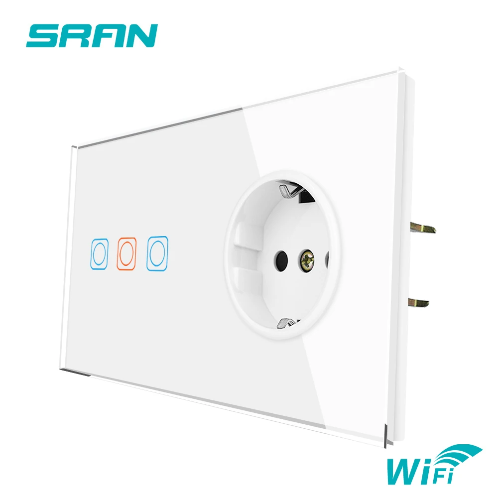 SRAN Новый Умный Wi-Fi переключатель и электрические розетки, полная плоская кристаллическая стеклянная панель, 153*82 мм ЕС умный переключатель с розеткой