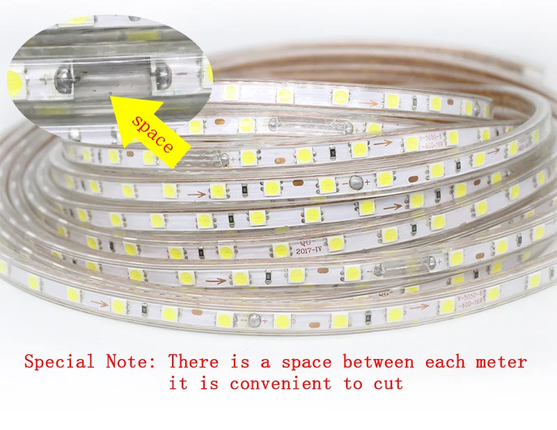 Светодиодная лента SMD5050 220 В, 60 светодиодовм, водонепроницаемая светодиодная лента с переключателем, 1 м, 3 м, 5 м, 10 м, 20 м