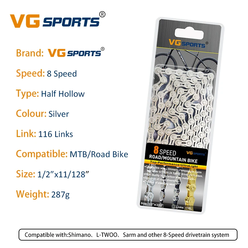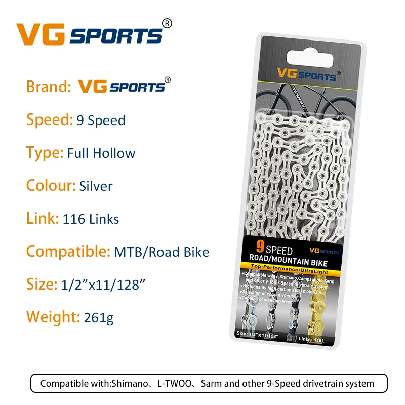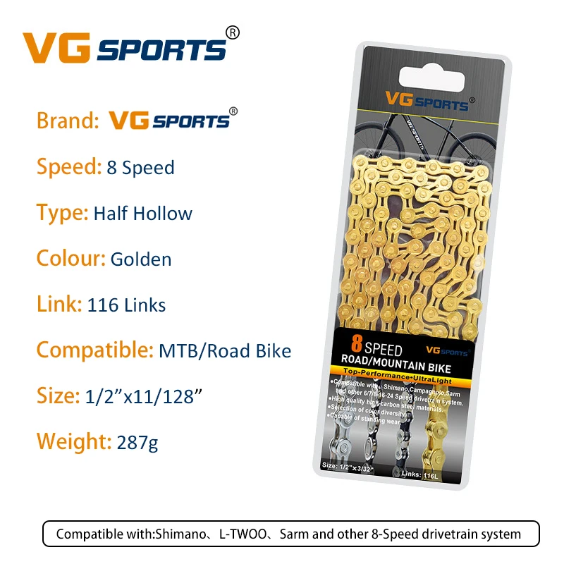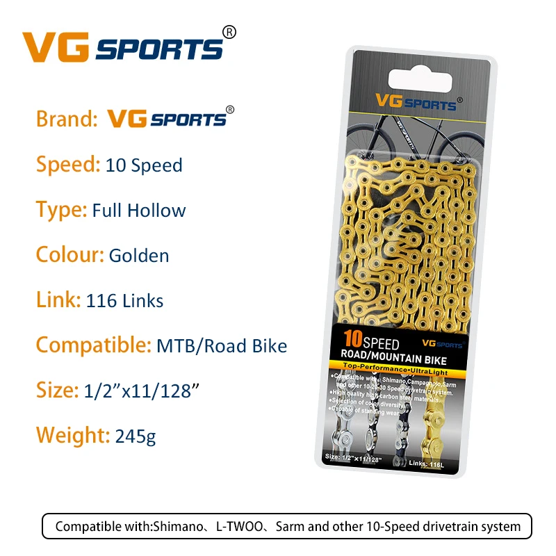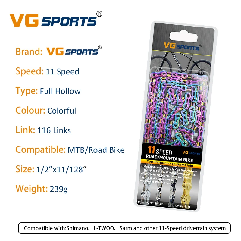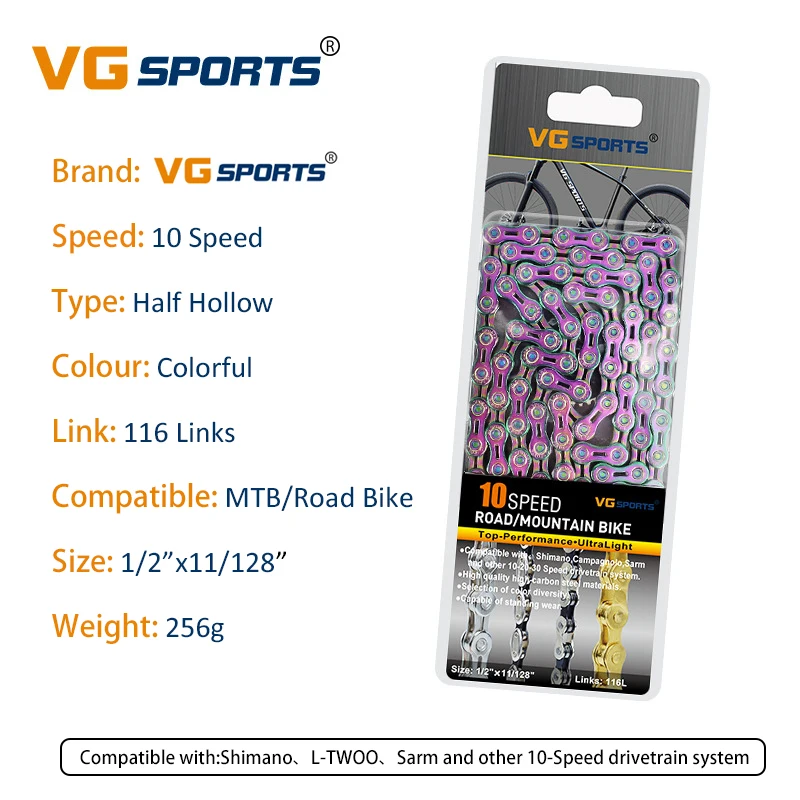 Велосипедная цепь VG, 891011 скоростей, полый, золотистый, Радужный, 116 звеньев, цепи для горного велосипеда, дорожные велосипедные аксессуары