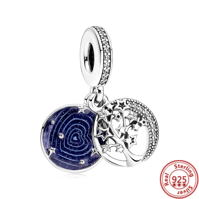 Женская серебряная цепочка со звездным небом, Очаровательная цепочка, Подходит для Pandora, оригинальные браслеты, браслет сделай сам, новинка 2021, бусина в виде Луны и пространства