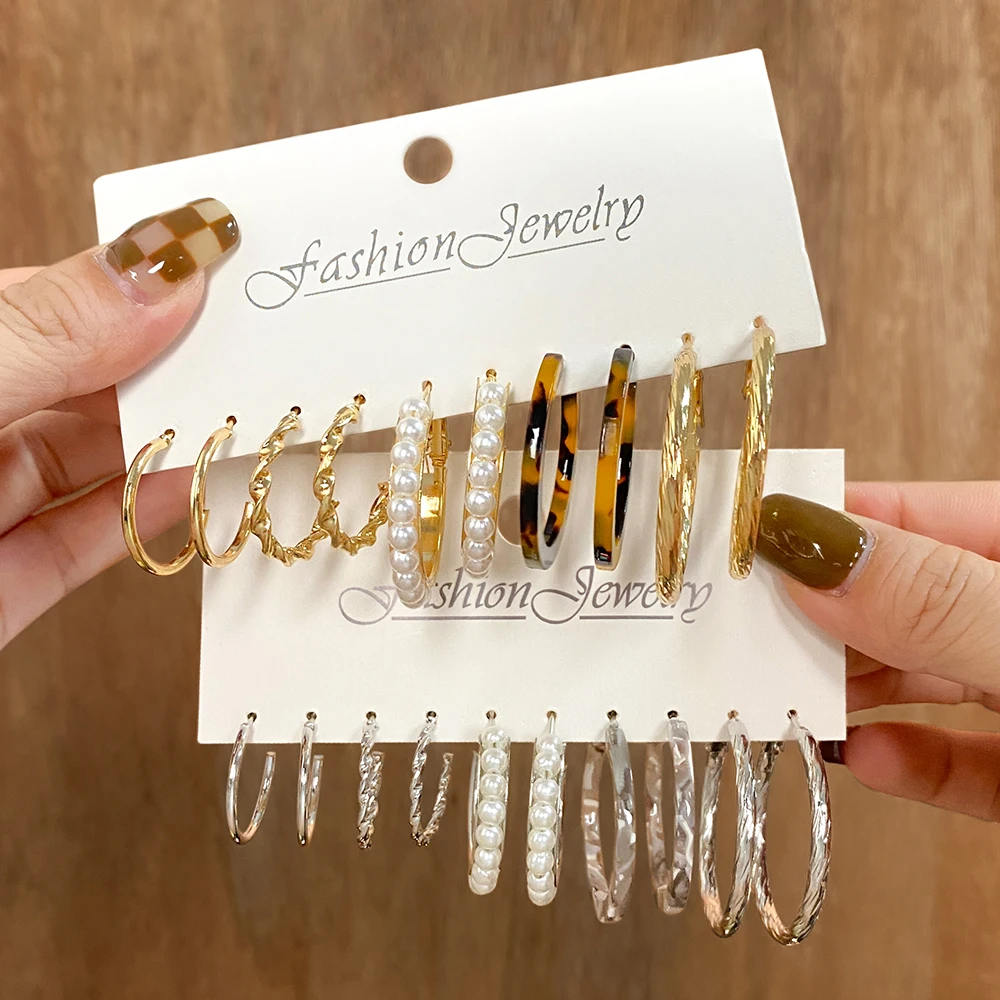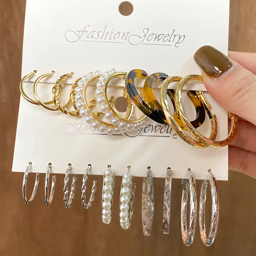 Трендовый Золотой Серебряный цвет круглый обруч Комплект сережек для женщин Акриловые жемчужные круглые серьги-кольца 2021 тренд Brincos вечерние ювелирные изделия