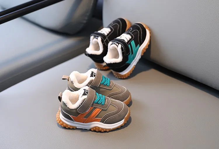 Зимние Детские повседневные туфли, водонепроницаемые плюшевые теплы...