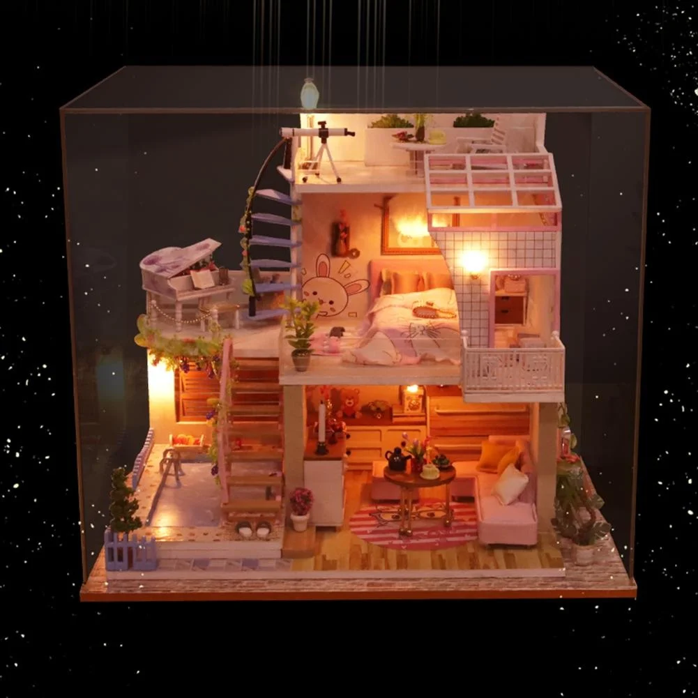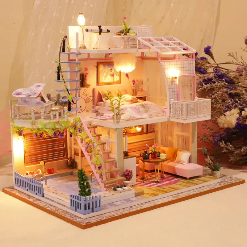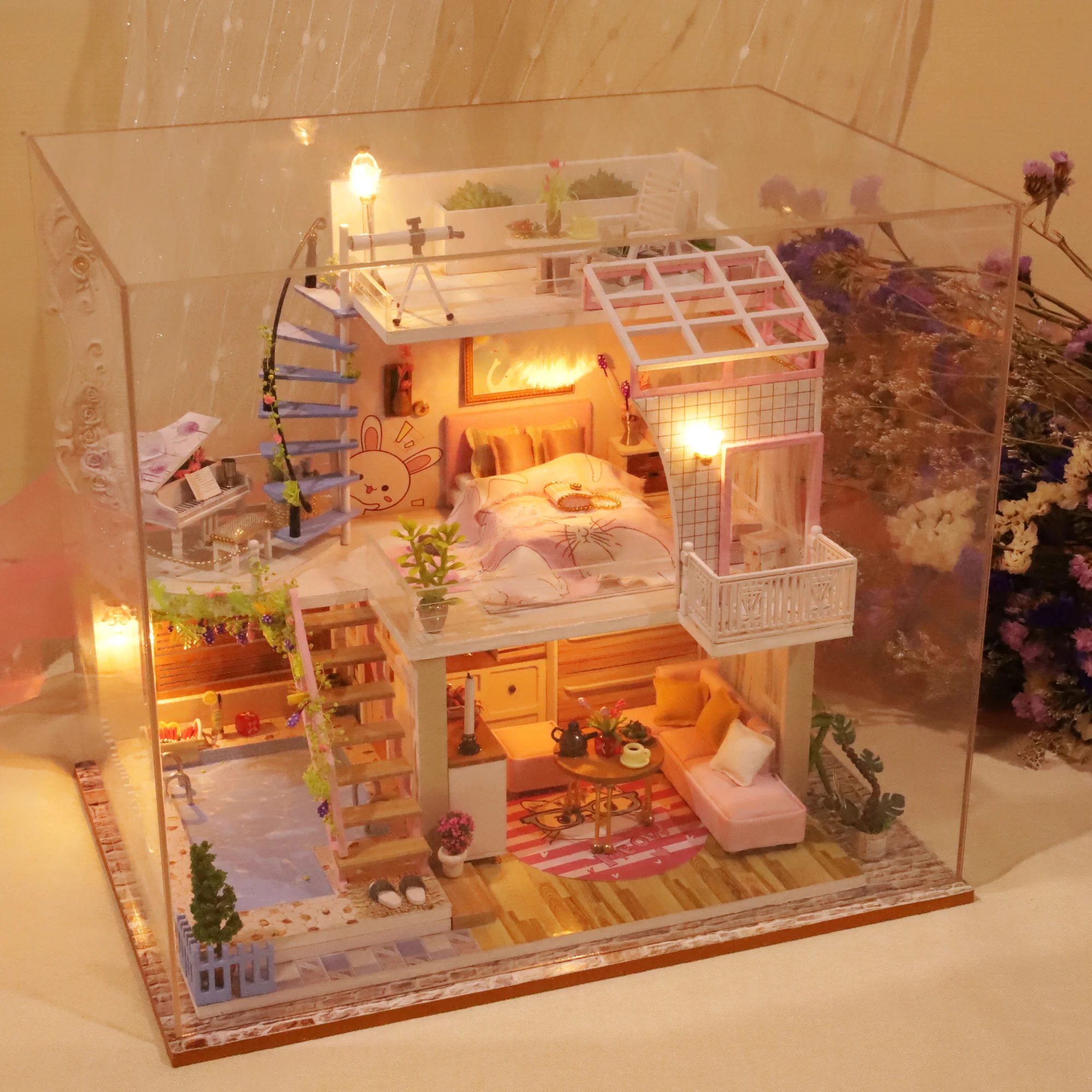 Миниатюрные деревянные кукольные домики сделай сам Happy Time Розовая Принцесса Лофт собранная миниатюрная с мебелью кукольный домик игрушки для детей подарок для девочек