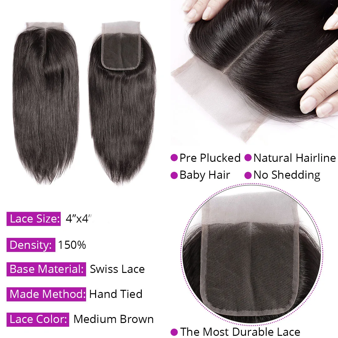 Hair TypeBone Straight Hair Bundles with 4x4 Closure