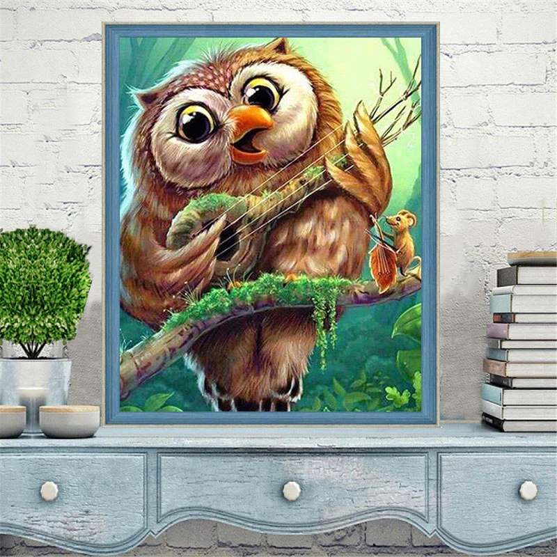 Мультяшные животные, Алмазная Сова, кот, кролик, ночь, 5D, сделай сам, вышивка крестиком, натуральное животное Стразы, полностью паста для гостиной, домашний декор