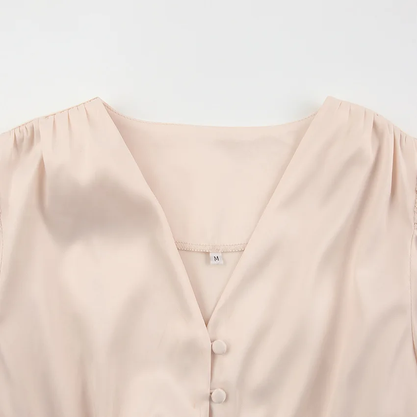 Винтажное атласное платье MUICHES с V-образным вырезом, женское однобортное платье с рукавами-фонариками, длинное праздничное платье, новинка 2021, модное платье с высокой талией