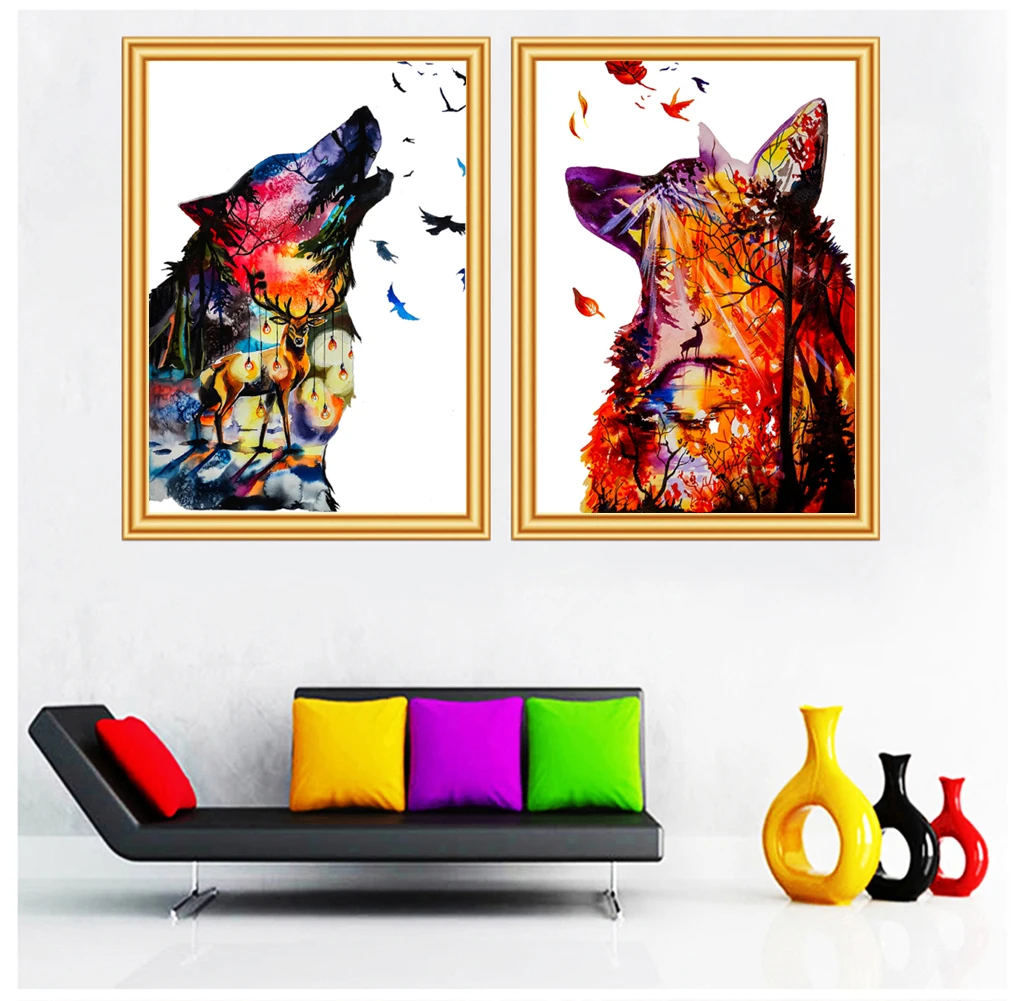 Алмазная 5D живопись сделай сам, круглая вышивка с животными, вышивка крестиком, лиса, волк, кошка, стразы, мозаика, украшение для дома ручной работы