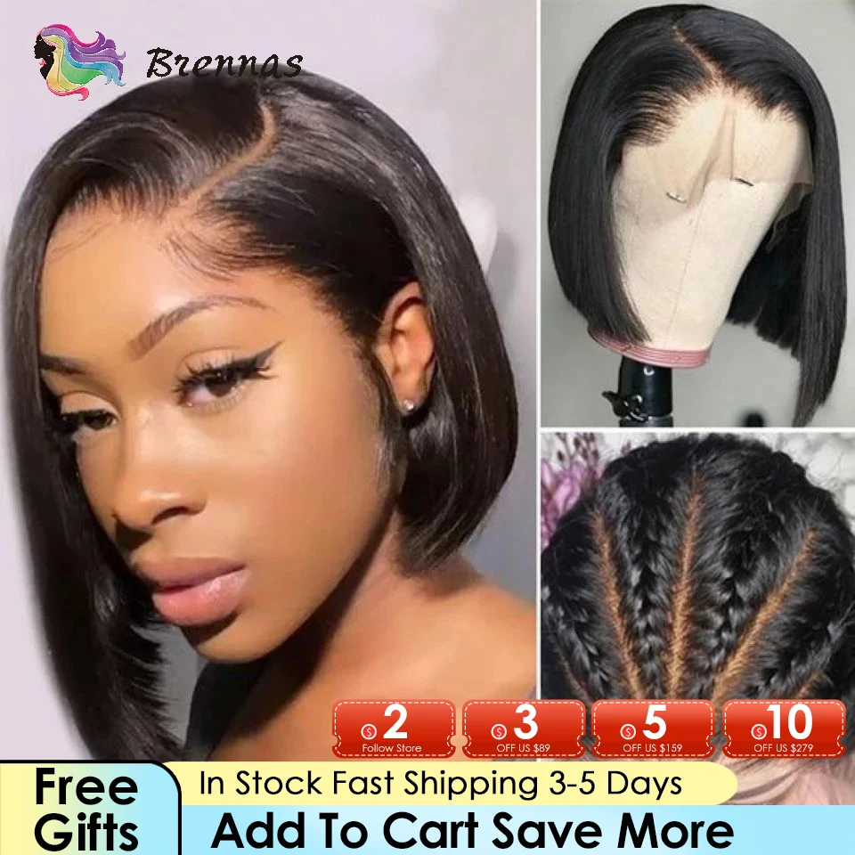 Прямые фронтальные парики из человеческих волос, бразильские волосы HD 13x4, Короткие парики с коротким Бобом, предварительно выщипанные неповрежденные волосы для женщин