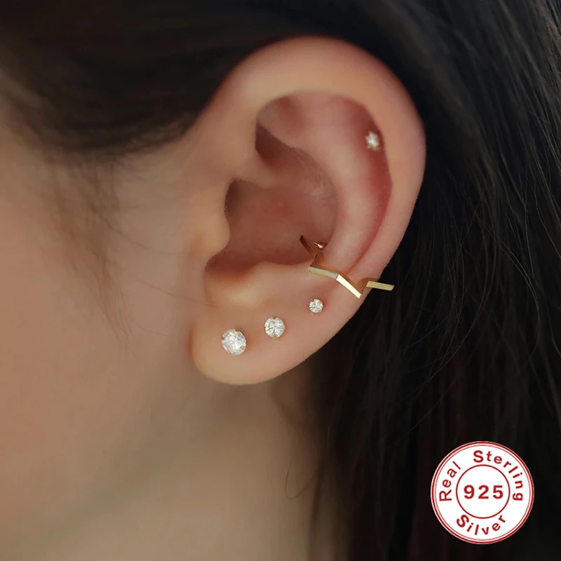 Шикарные циркониевые серьги 925 пробы серебряные клипсы на серьги для женщин девушек CZ без пирсинга C Форма поддельные серьги, Надеваемые На ушной хрящ ювелирное изделие