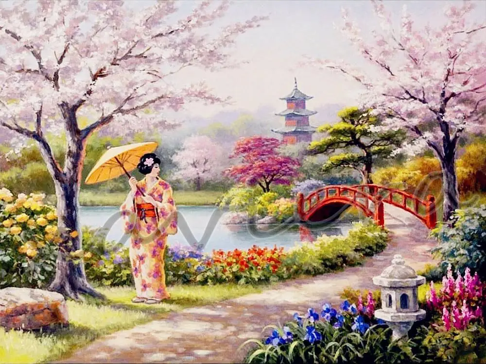 Полноразмерная Алмазная картина сделай сам, японский картон, Сакура...