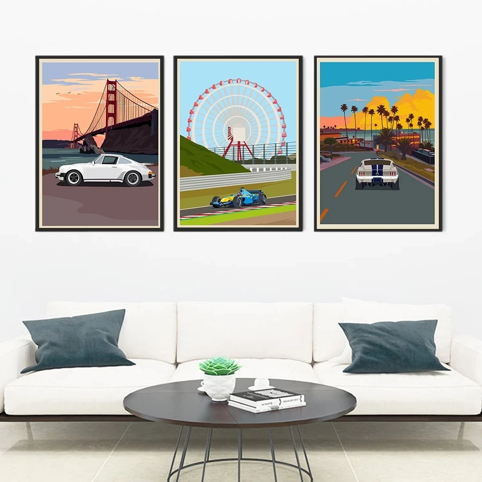 Классная Картина на холсте с разными видами гоночных автомобилей, Hd печать, украшение для дома, Модульная картина, пейзаж, постер для гостиной, настенное художественное оформление