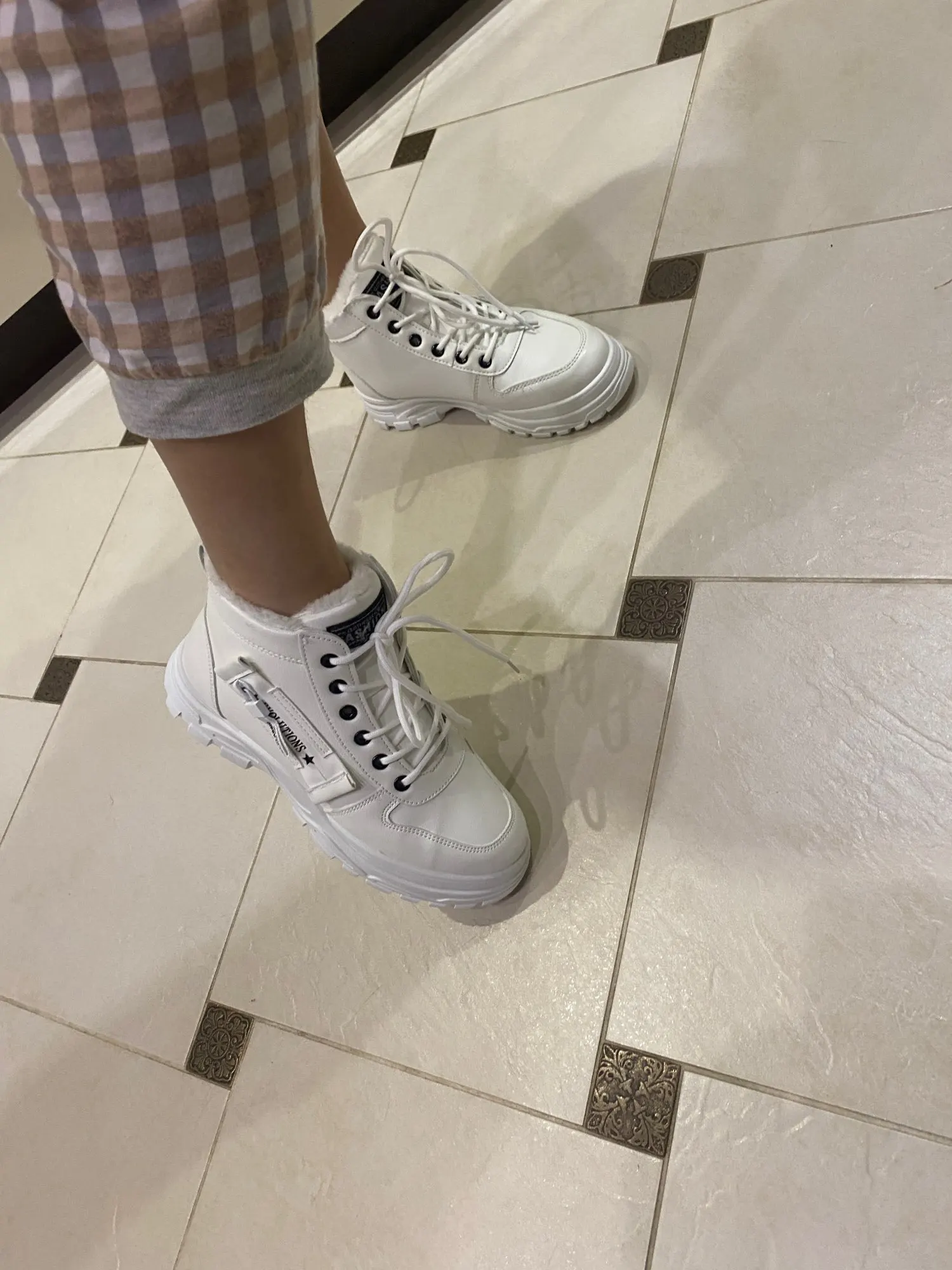 на вид красивые ботинки правда с размером чуток не то заказывала 39 хотя ношу 38 ботинки прям в притык незнаю будут давить при носке или нет