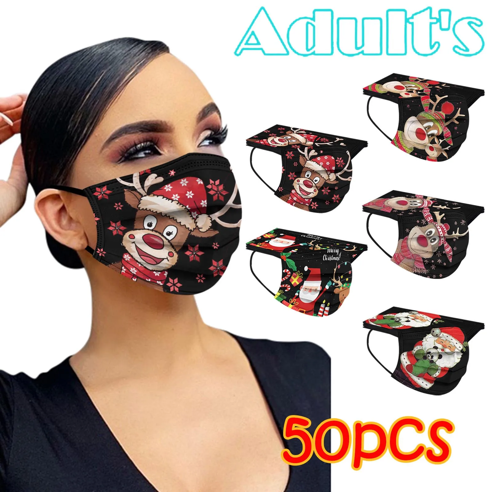 50 шт. одноразовая Маска для лица для взрослых с новым годом 2022 Маска с Рождеством 3-слойная защитная фотомаска для нового года