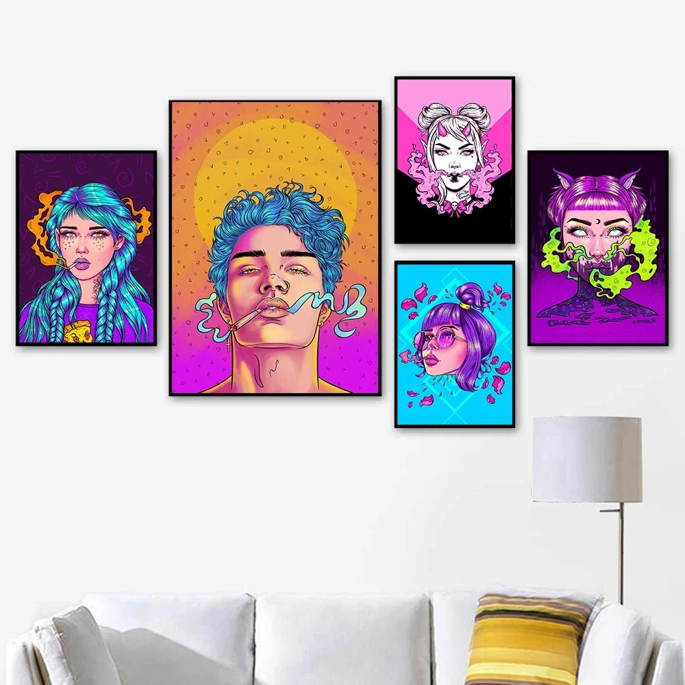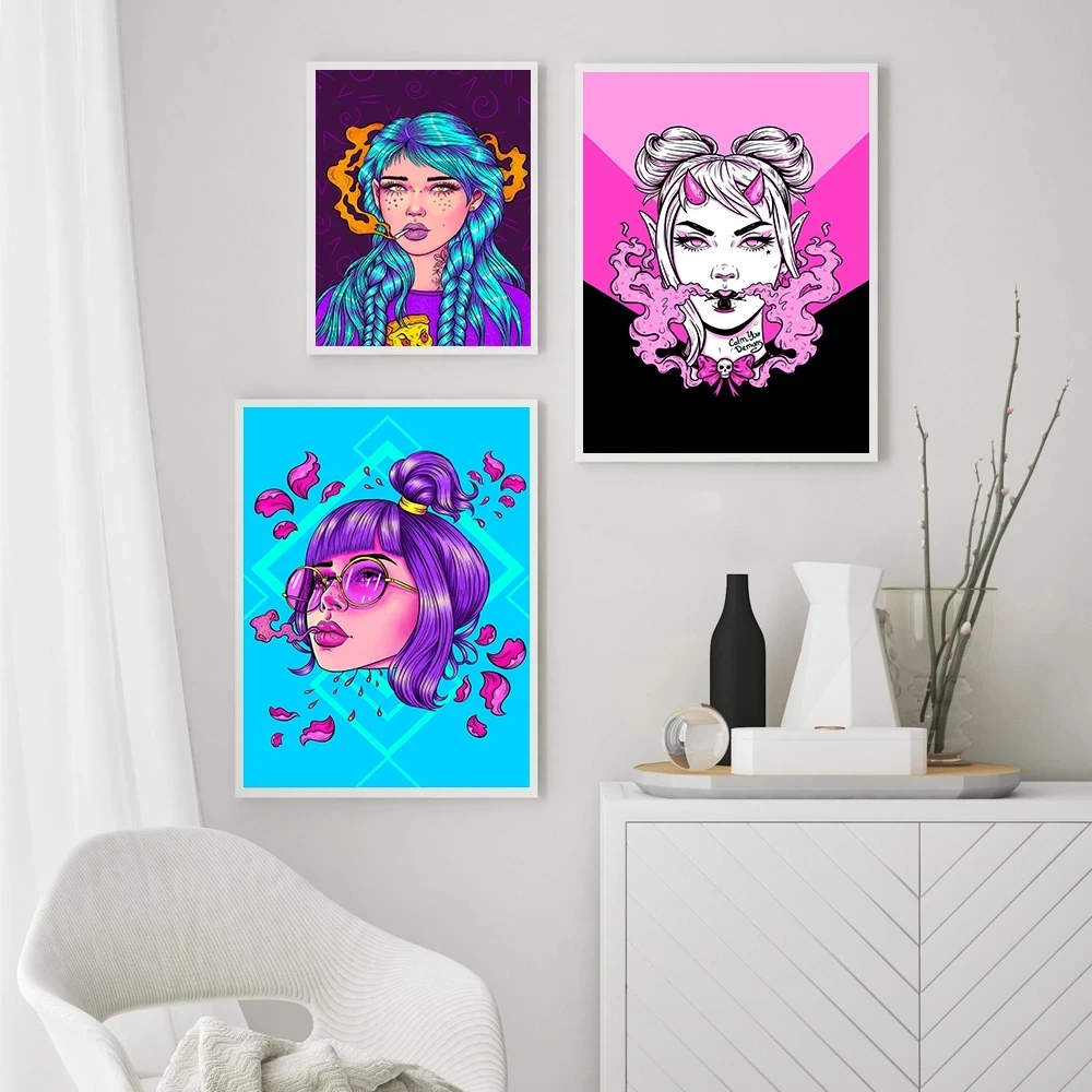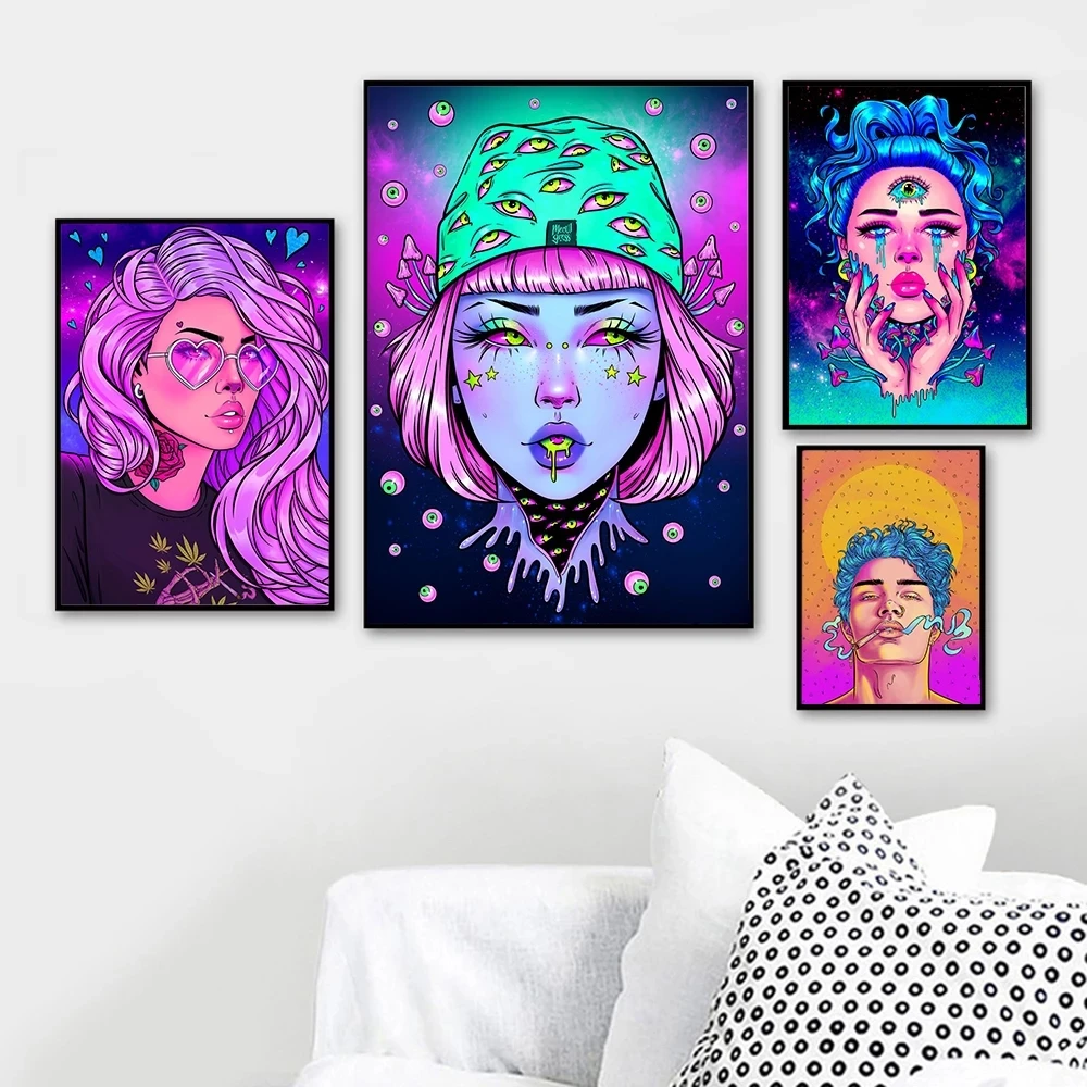 Плакат неоновый абстрактный настенный художественный модный плохая девушка HD Печать Феминистская Волшебная ведьма глаза холст картины Домашний декор модульные картины