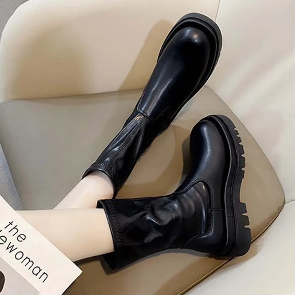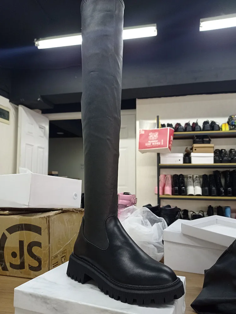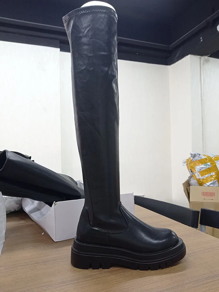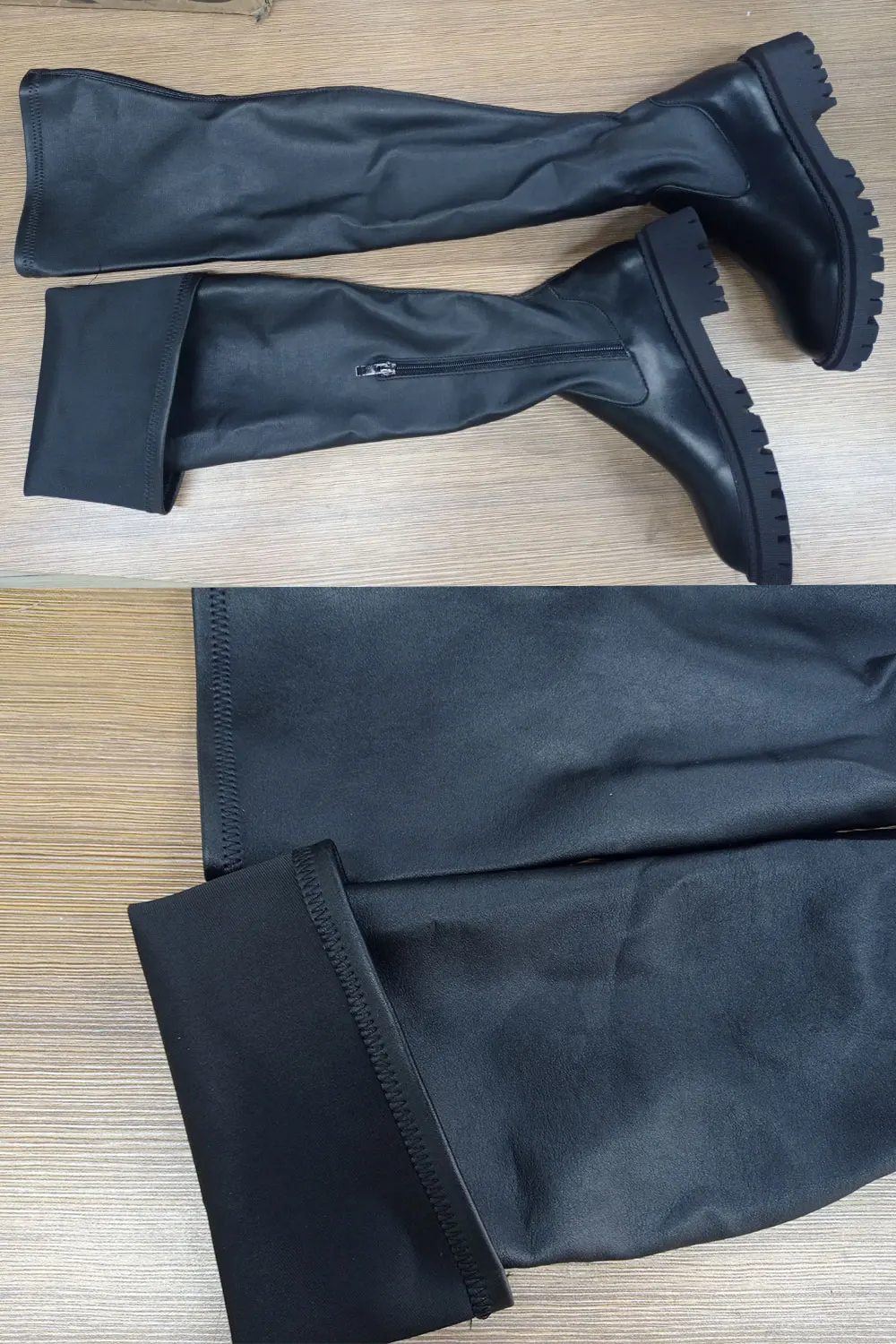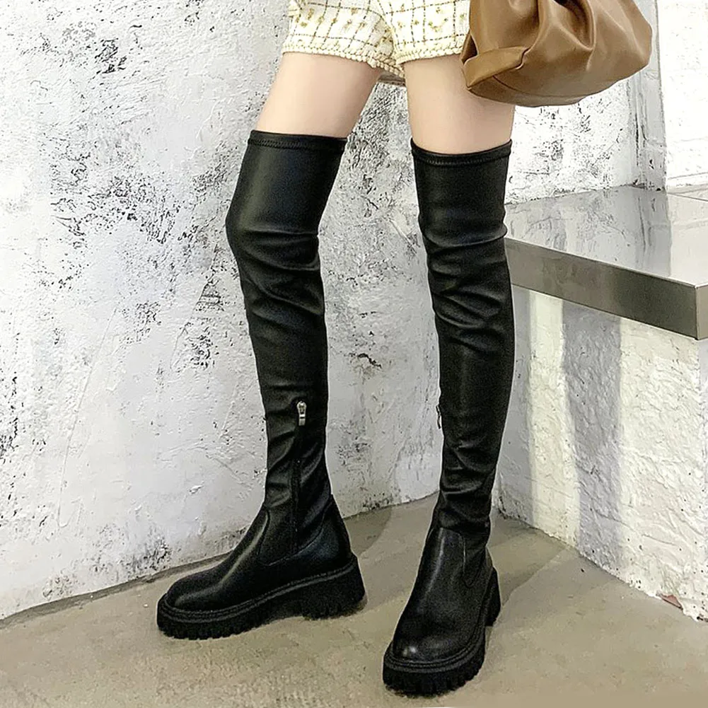 Брендовый дизайн, высокое качество, искусственная кожа, квадратный каблук, слипоны 2021, зимние черные крутые сексуальные элегантные женские сапоги выше колена, обувь