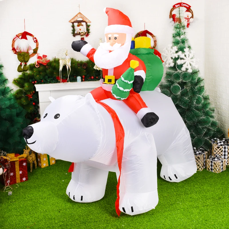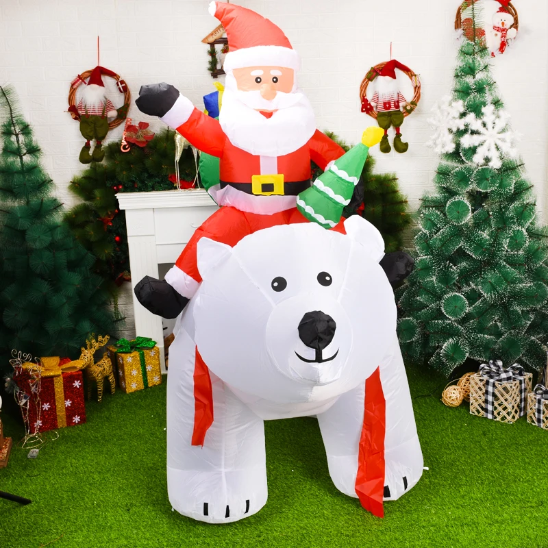 2,1 м светодиодный полярный медведь, надувной Санта-Клаус, рост, езда, полярный медведь, надувная кукла, наружный сад, Рождественский Декор
