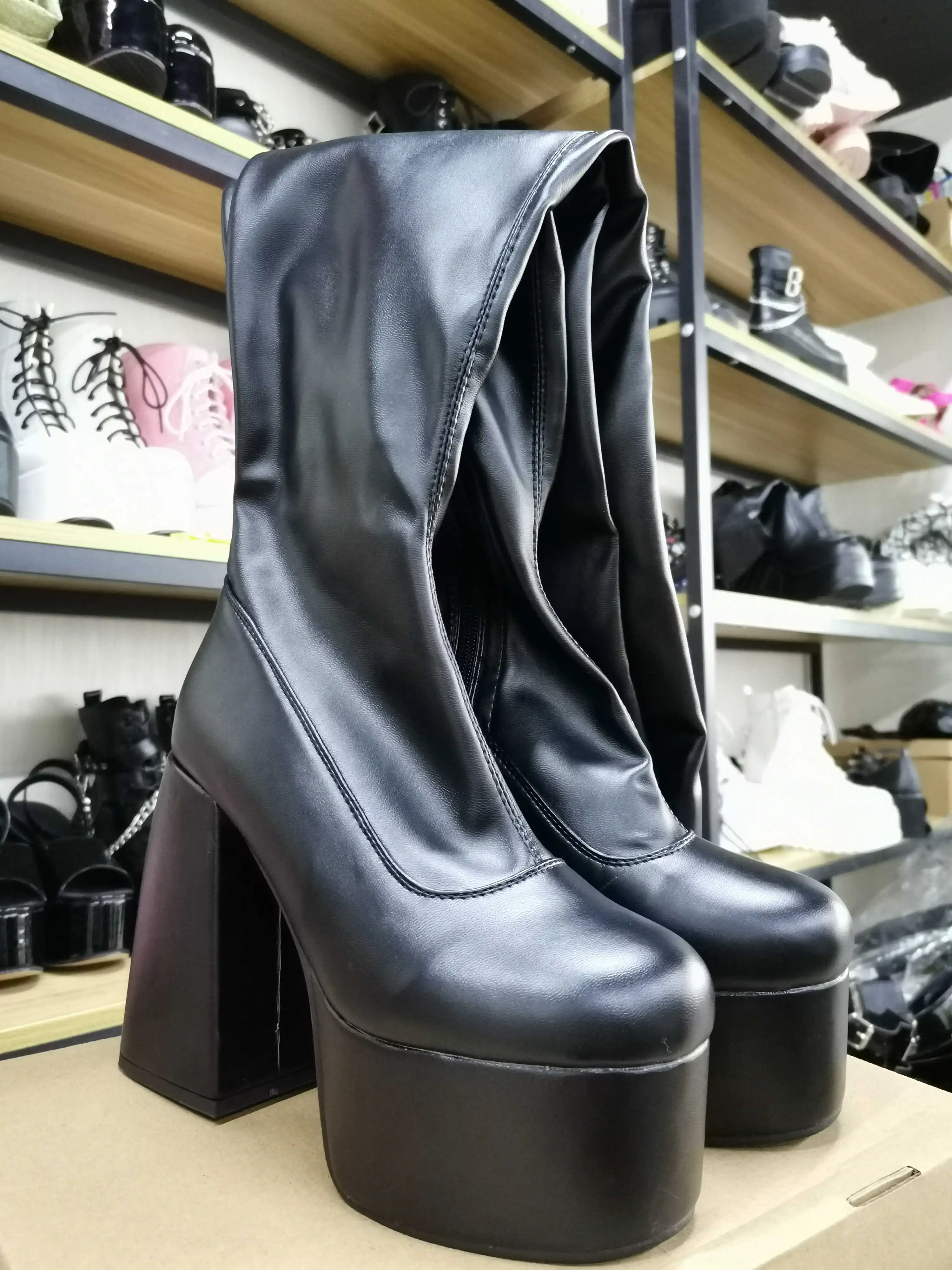 Женские вечерние сапоги до колена, элегантные удобные сапоги на массивной платформе, на высоком каблуке, большой размер 43, для ходьбы, 2021