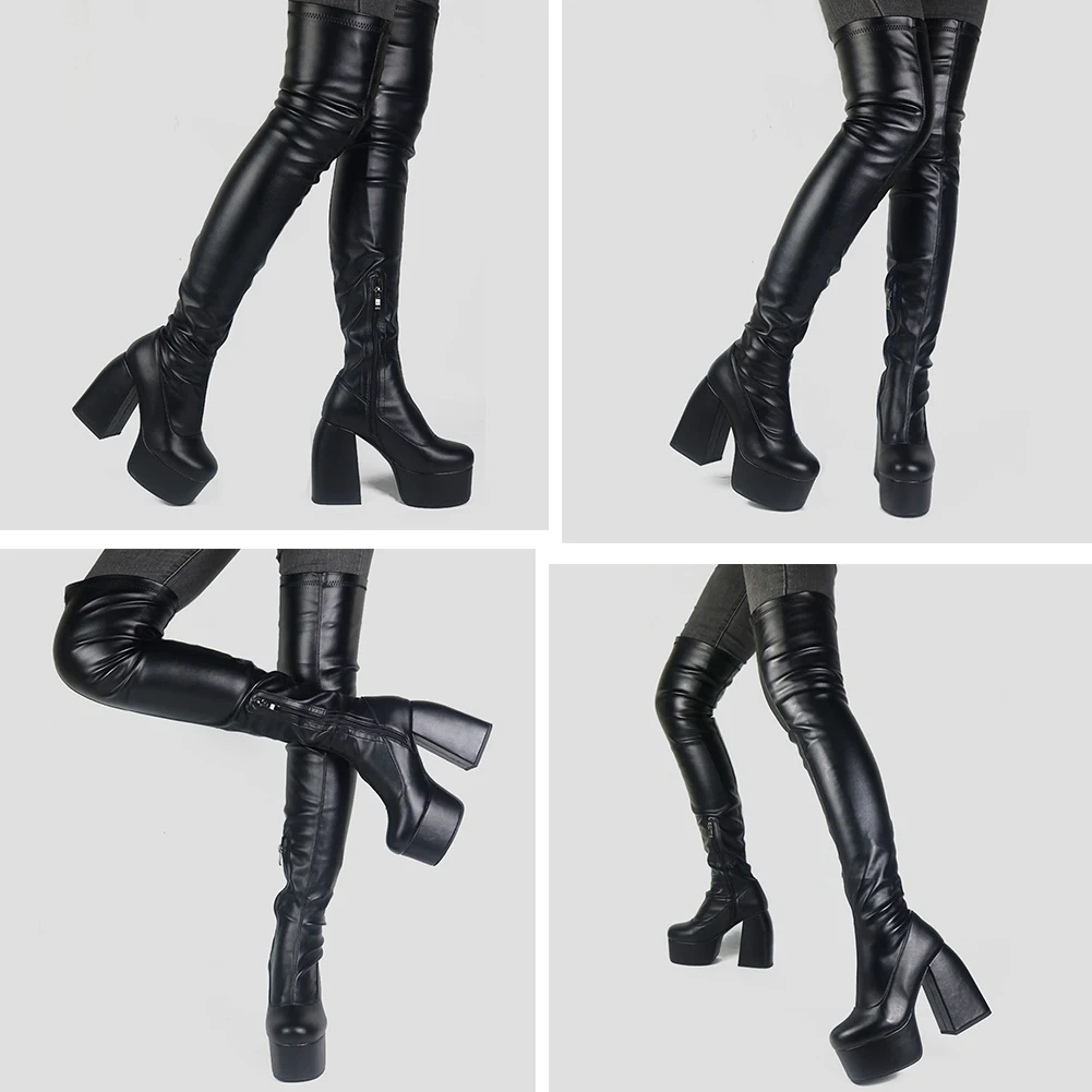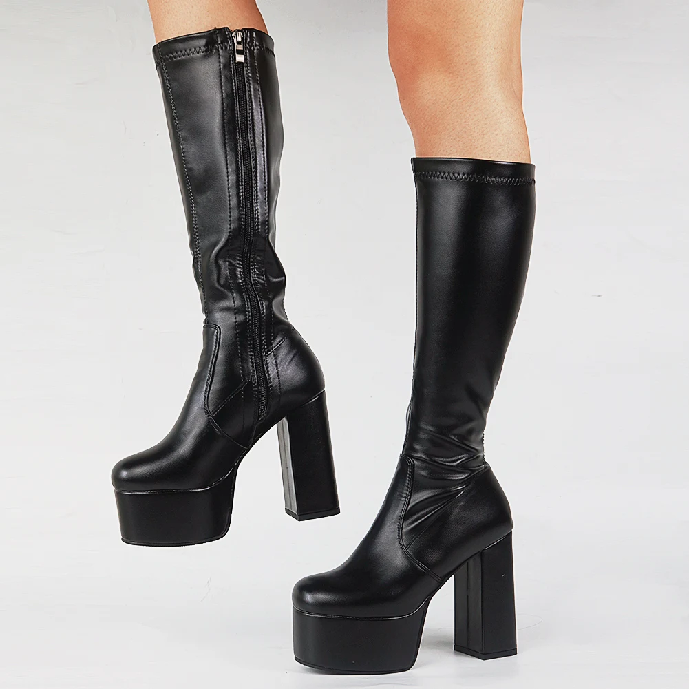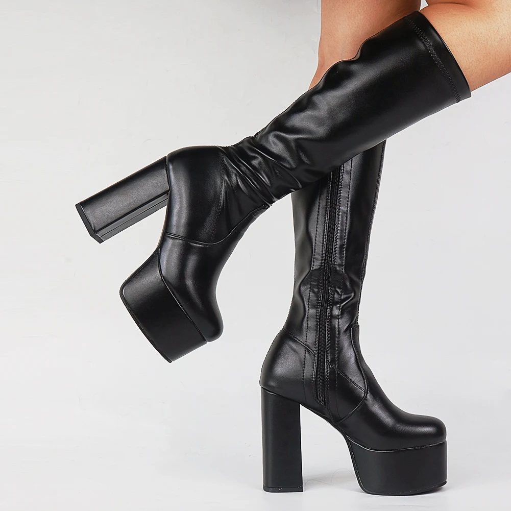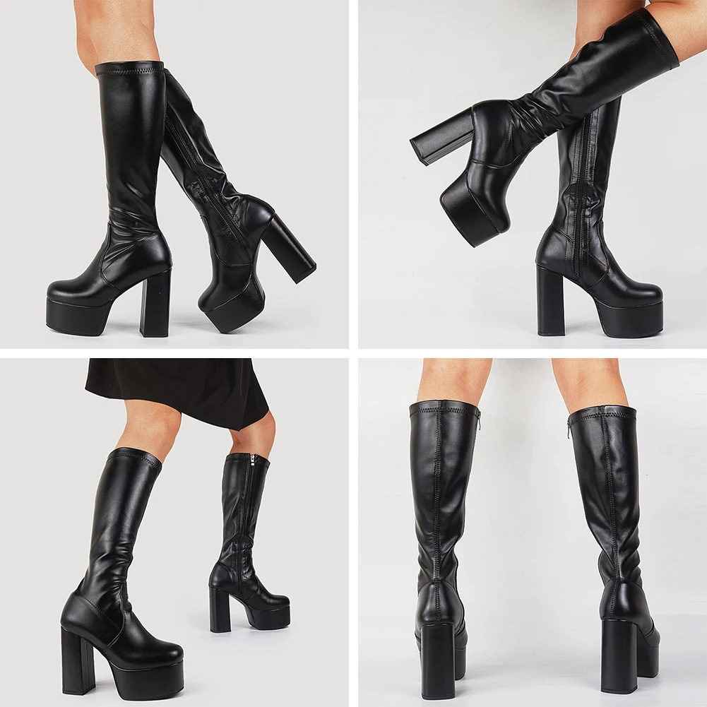 2021 New Fashion Women Knee High Boots Sexy Party Elegant Chunky Platform High Heel Great Quality Big Size 43 Walking Comfy