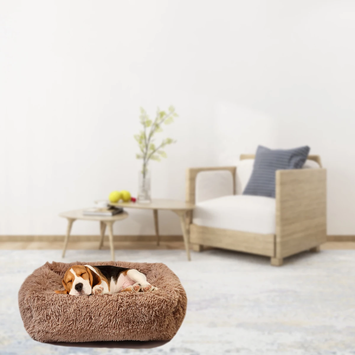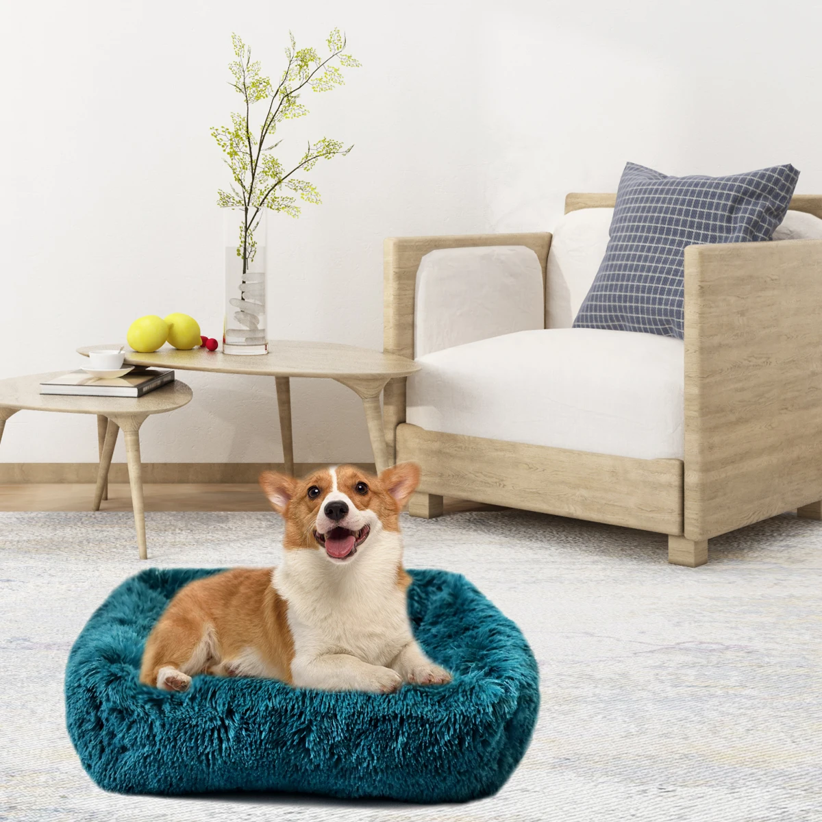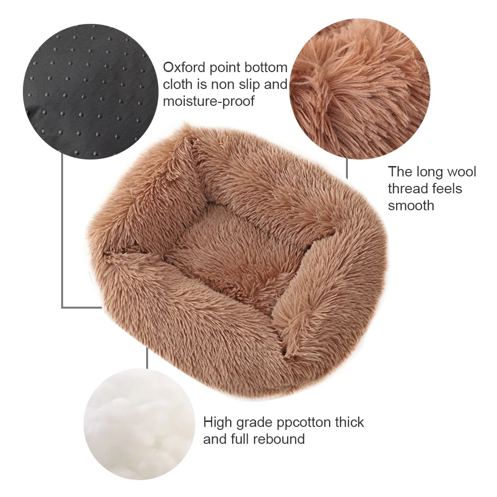 Плюшевая кровать для домашних животных, квадратная супермягкая тепл...