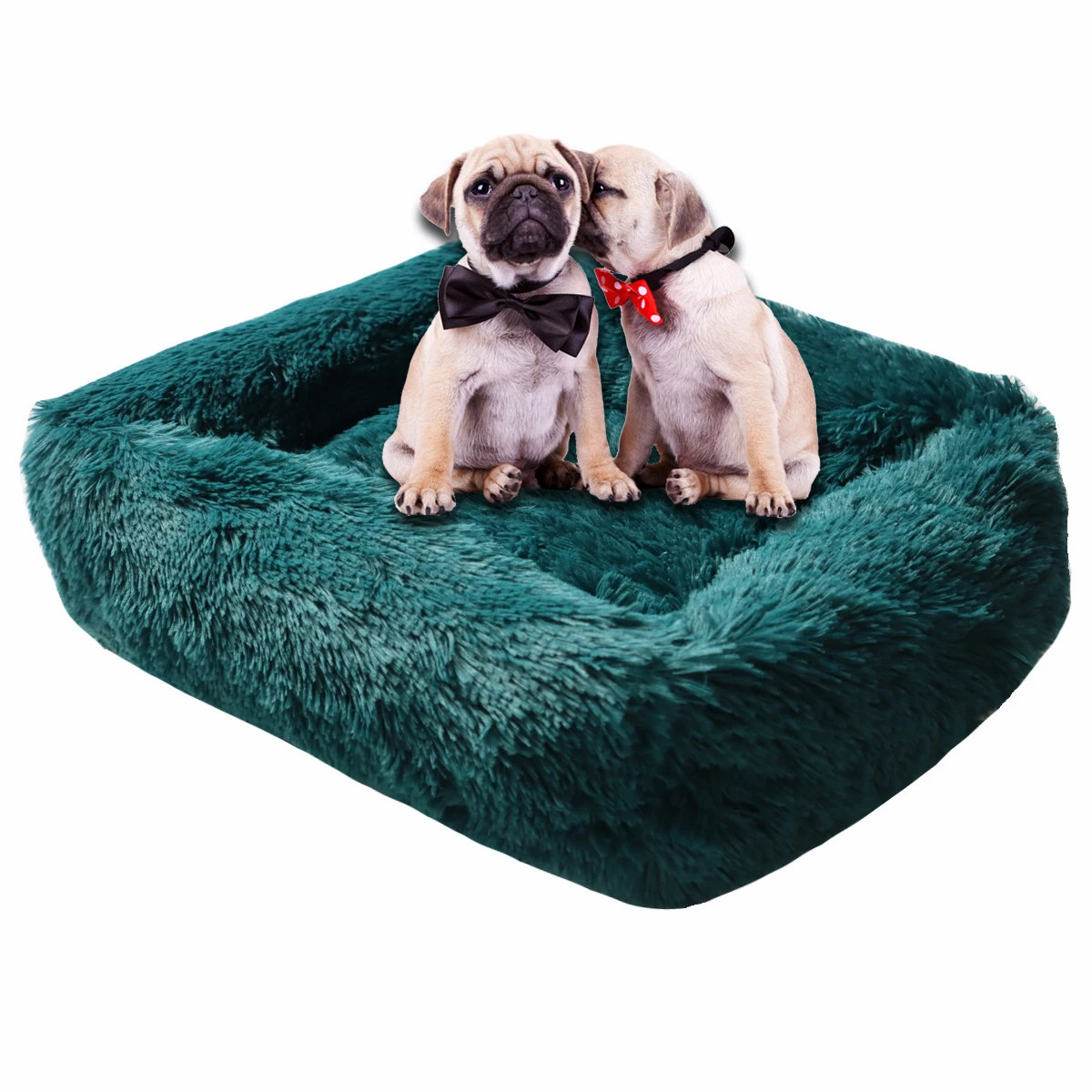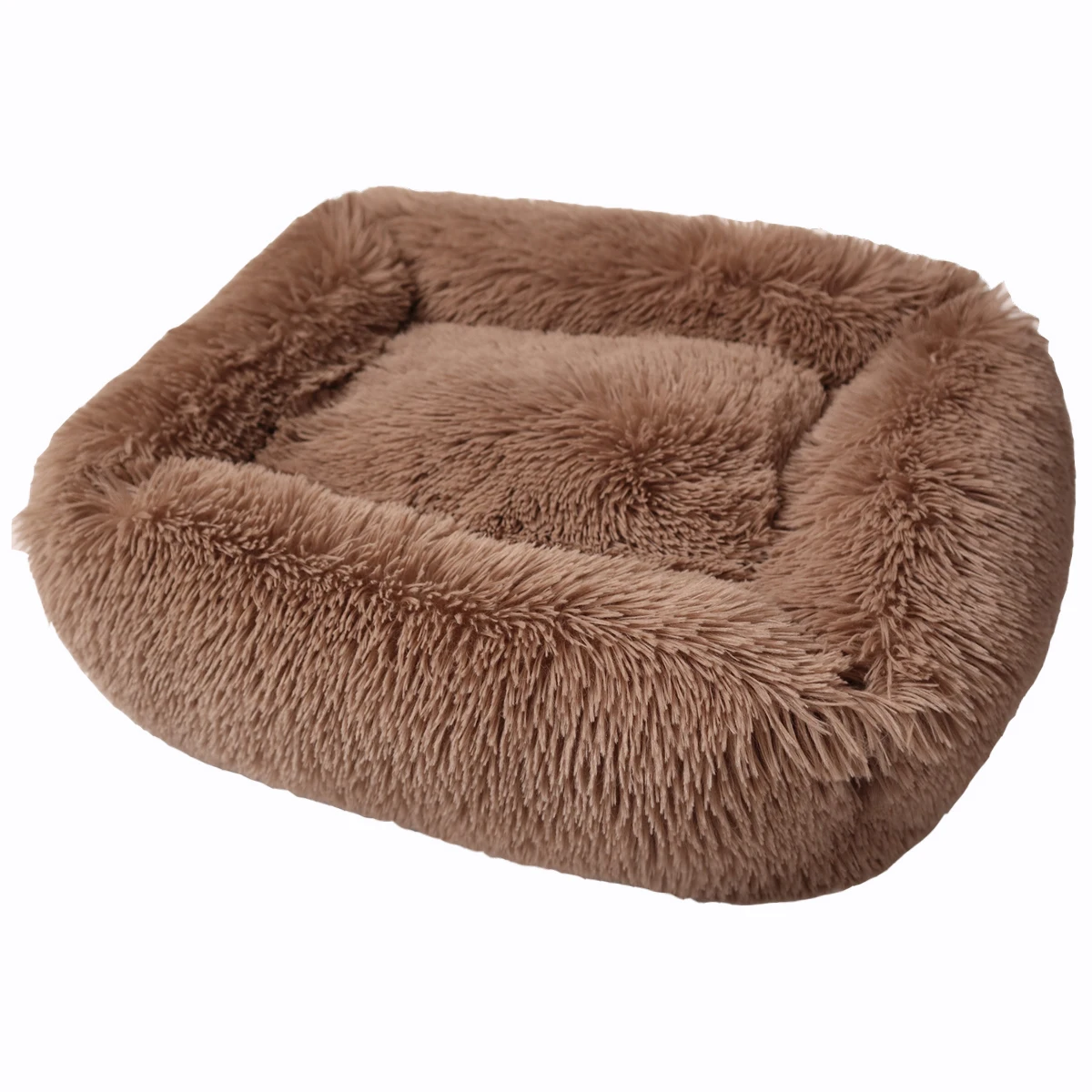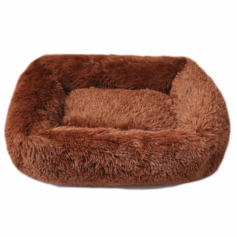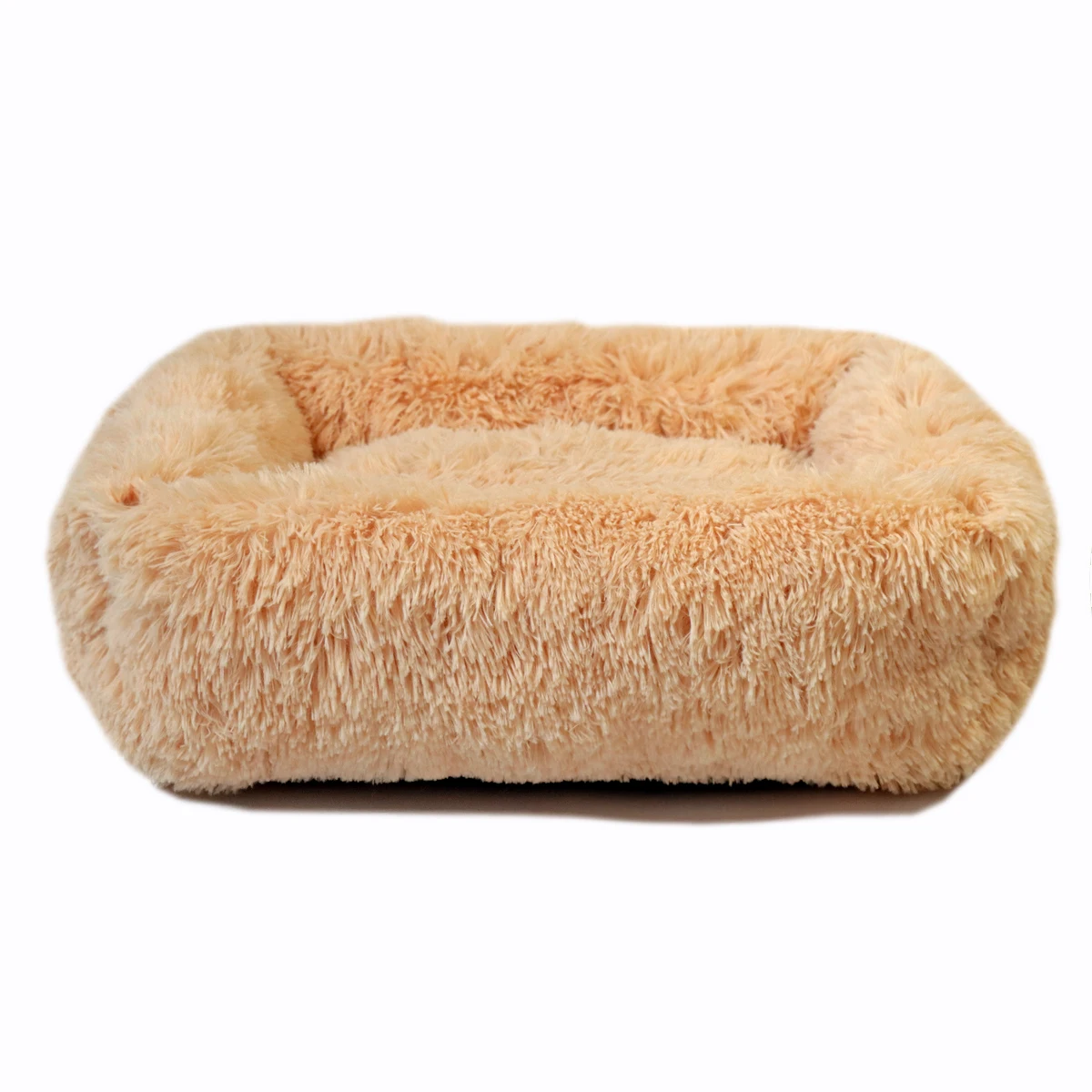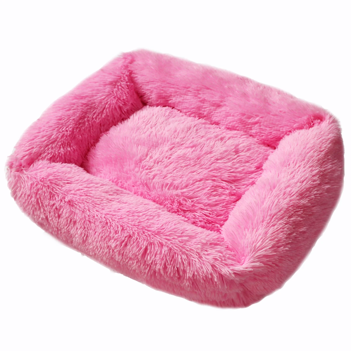 Квадратная кровать для собак, Длинные Плюшевые однотонные лежанки д...