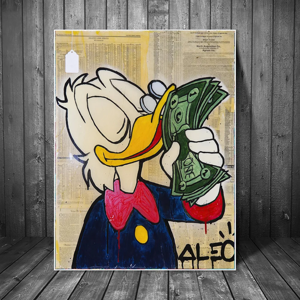 Дисней Дональд Дак Любовь Деньги граффити искусство картины печать на холсте плакаты и принты уличная СТЕНА ДЕКОР фотографии Куадрос