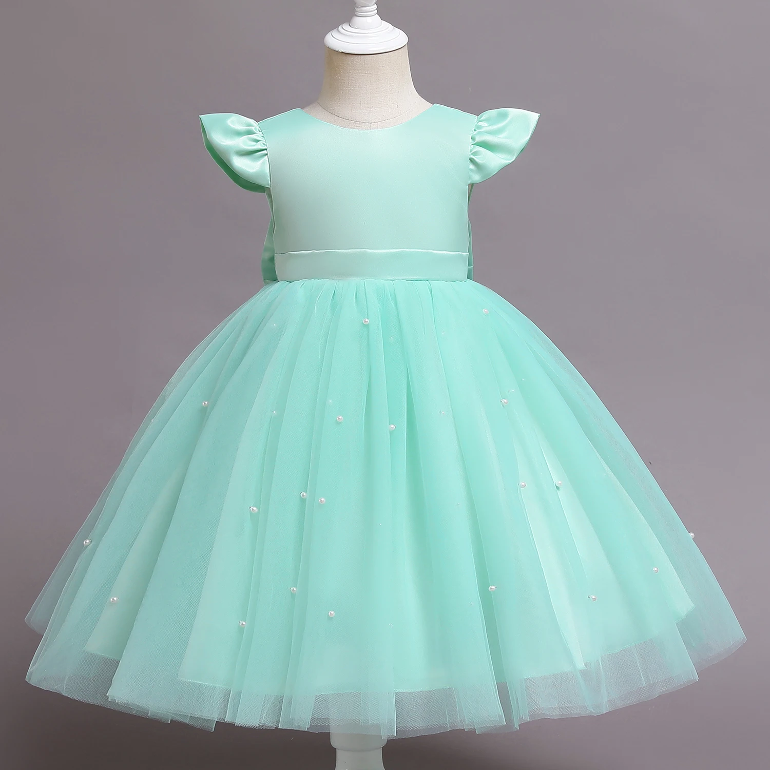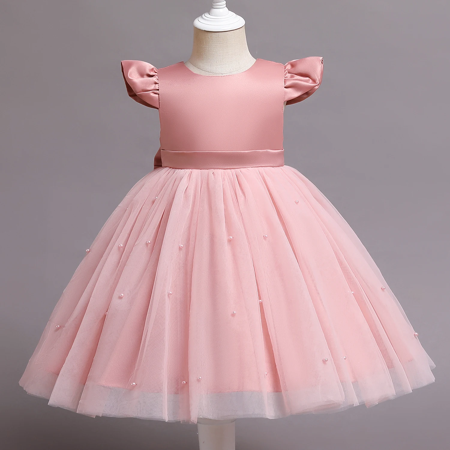 Детское платье принцессы с жемчугом, бантом и открытой спиной