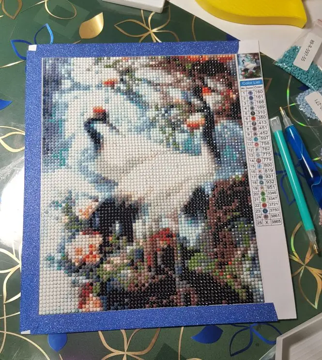 Алмазная живопись сделай сам, покрытая белыми перьями и светлым реб...