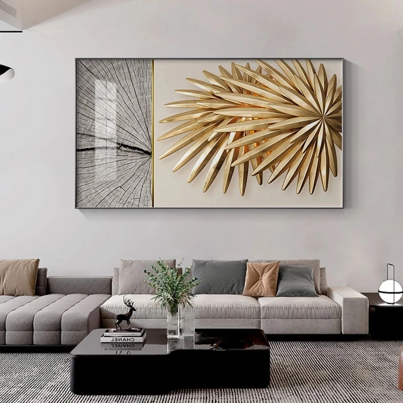 Скандинавская Золотая Роскошная Картина на холсте с золотыми листья...