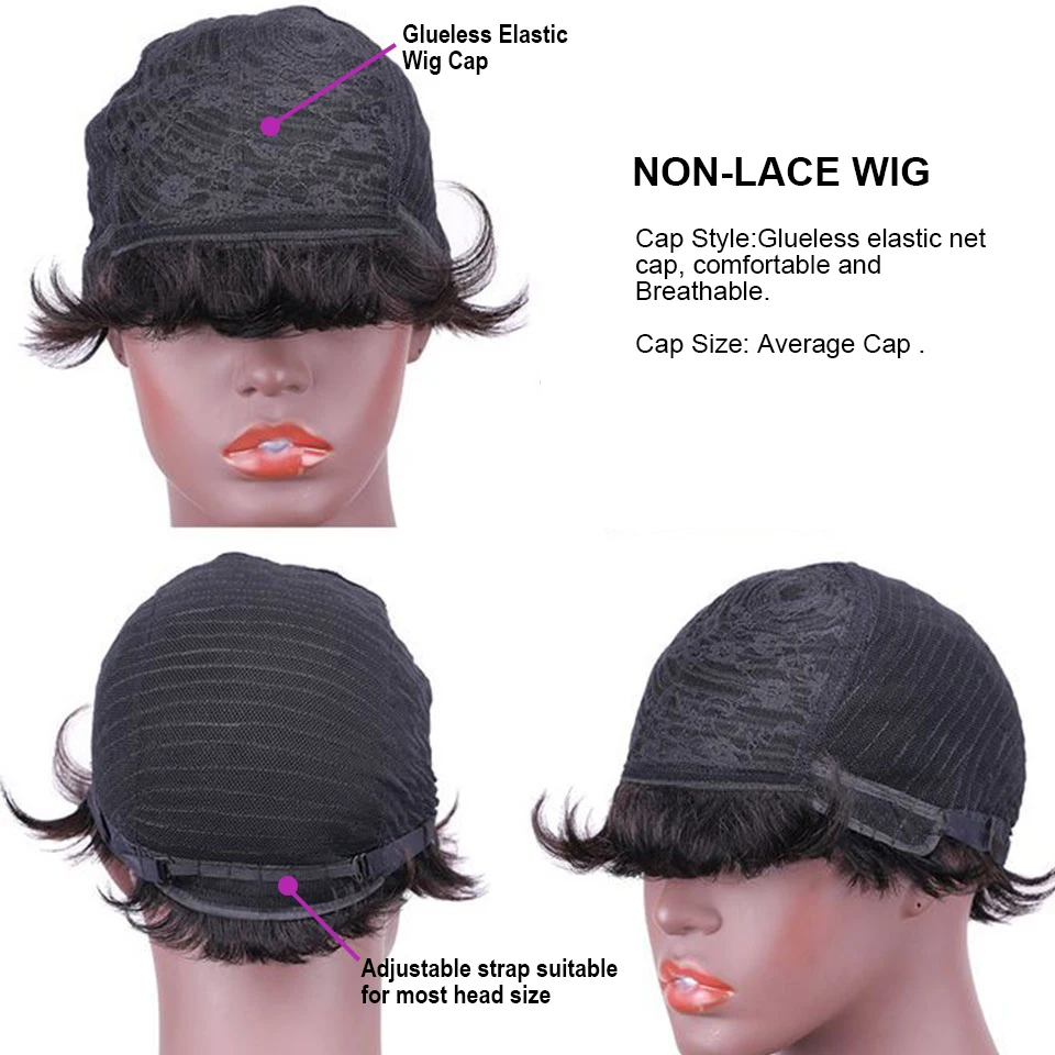 Короткие человеческие парики с челкой, натуральные волнистые волосы...
