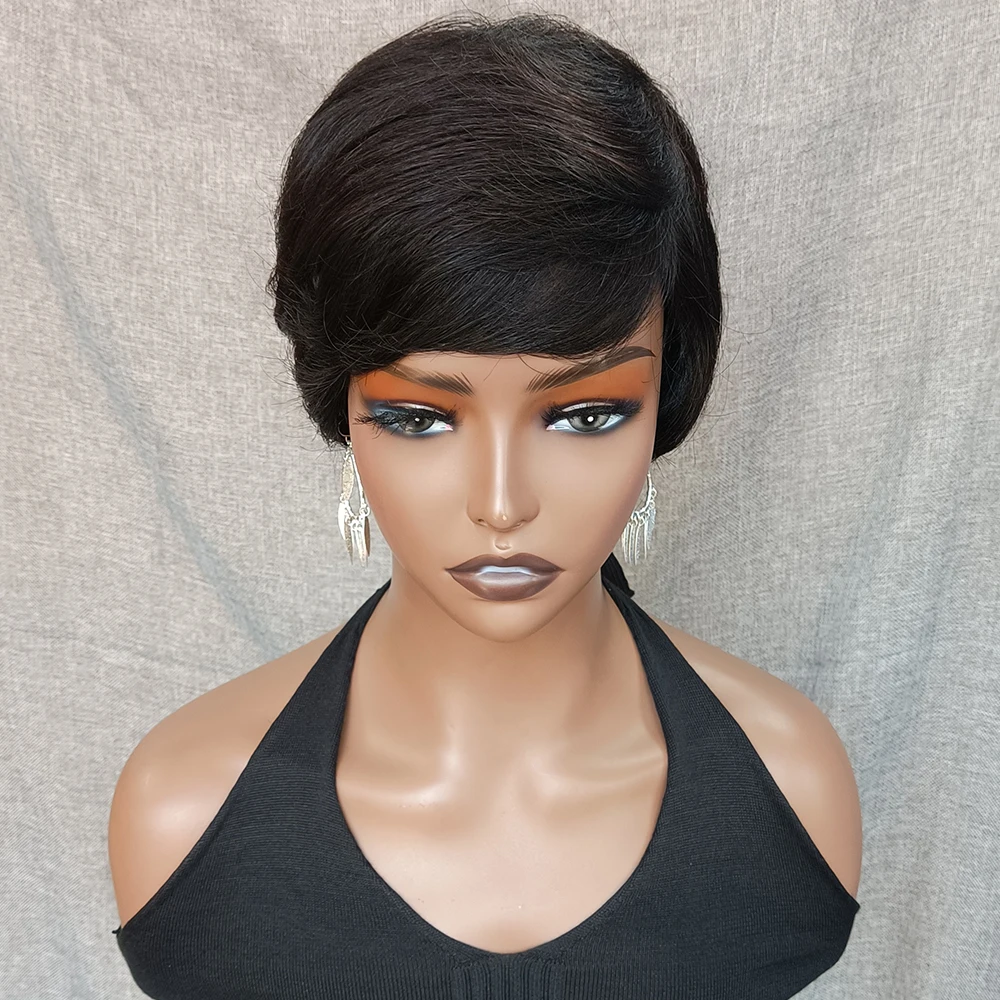 Оптовая продажа, дешевые короткие парики CEXXY, парики с челкой, бразильские Прямые безклеевые человеческие волосы без повреждений, парики для чернокожих женщин