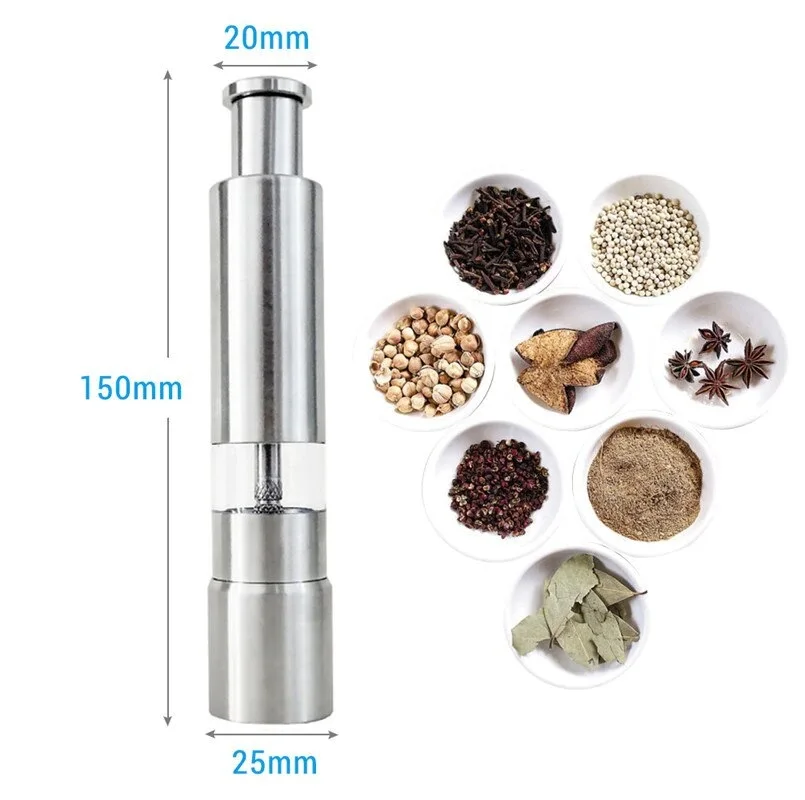 Мельница для перца из нержавеющей стали, измельчитель для специй и соуса с нажимом на большой палец, эффективно подходит для раз