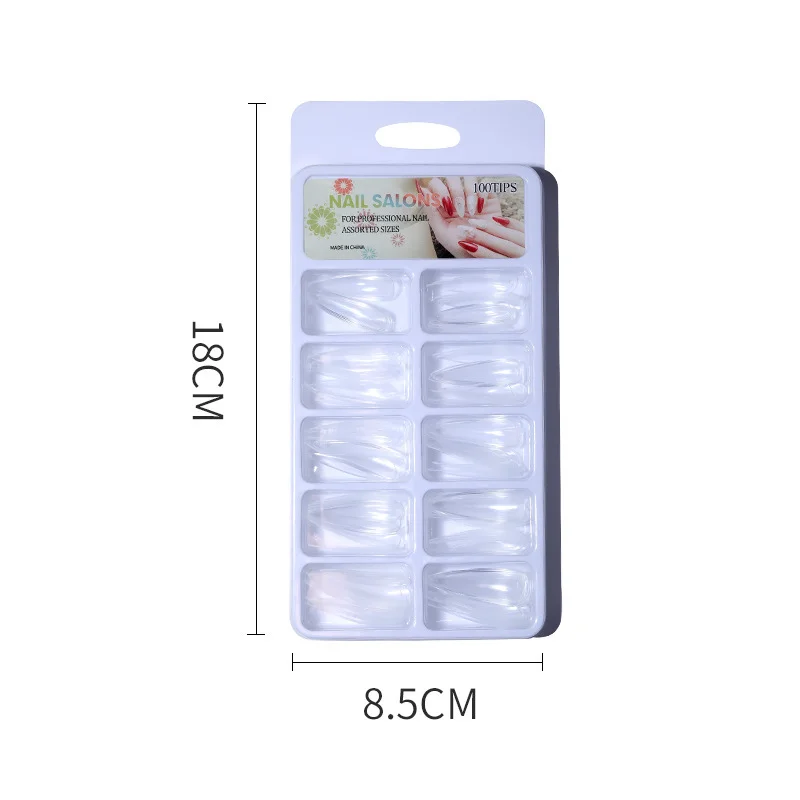 100 штук в штучной упаковке, прозрачный гроб, искусственные ногти, натуральный балет, ABS, полное покрытие, ногти, украшения, прессованные на ногти