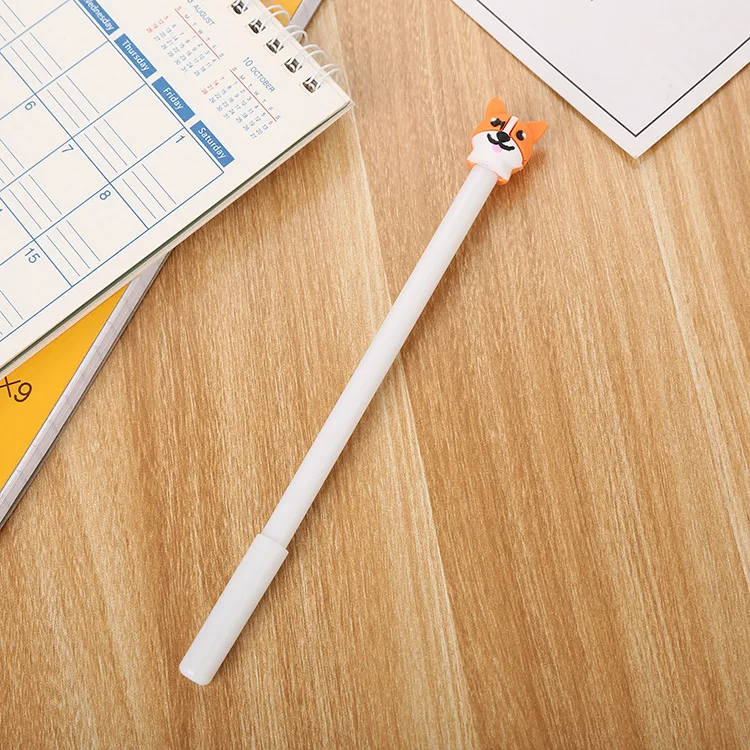 1 гелевая ручка в форме мультяшного лисы хаски собаки, креативные Обучающие канцелярские принадлежности, черная ручка для подписи, милая Студенческая ручка на водной основе