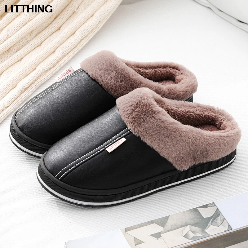 Женские и мужские зимние домашние тапочки Litthing из искусственной кожи водонепроницаемые слипоны пушистые плюшевые теплые повседневные меховые плоские слипоны