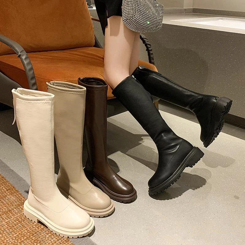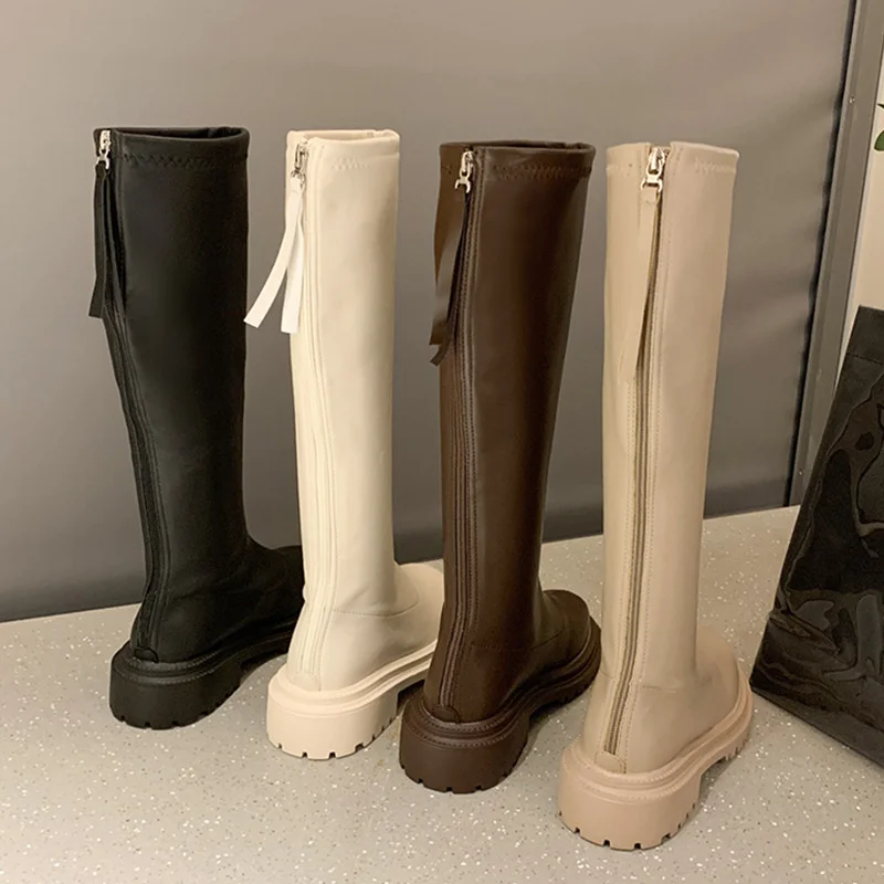 Женские брендовые сапоги Челси, зимние длинные роскошные сапоги до колена на массивной платформе, на молнии, с круглым носком, 2022