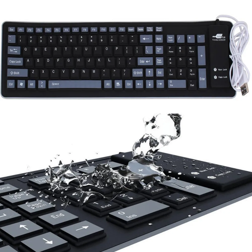 Новая портативная Бесшумная Складная силиконовая клавиатура USB Проводная Гибкая мягкая Водонепроницаемая рулонная силиконовая клавиатура для ПК ноутбука