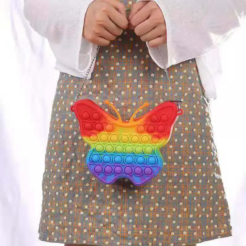 Модные Игрушки pop it с пузырьками, Радужный Единорог, Бабочка, милый детский кошелек, сумка-мессенджер, цветные игрушки-фиджеты