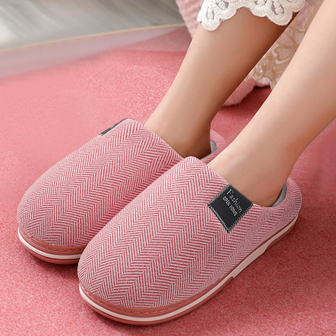 Тапки Litthing из пены с эффектом памяти, женские домашние тапочки 2021, зимняя Нескользящая мужская домашняя обувь, полосатая Повседневная Домашняя обувь для пар