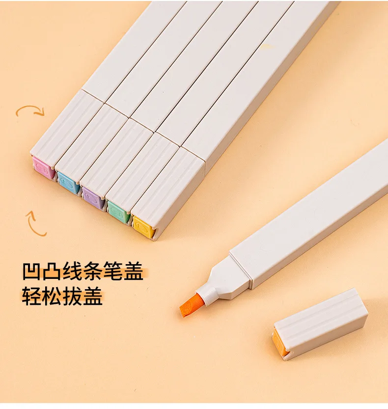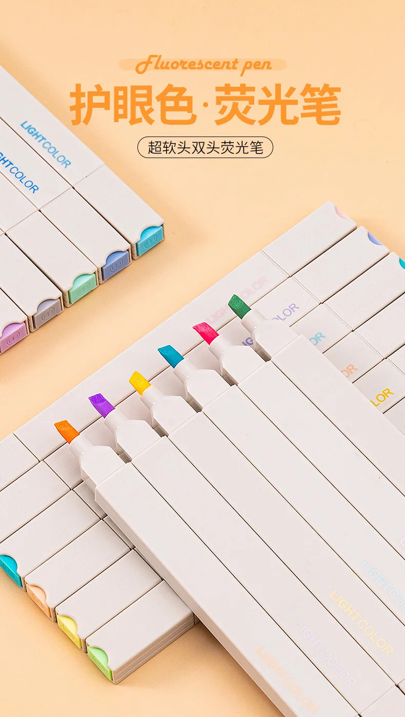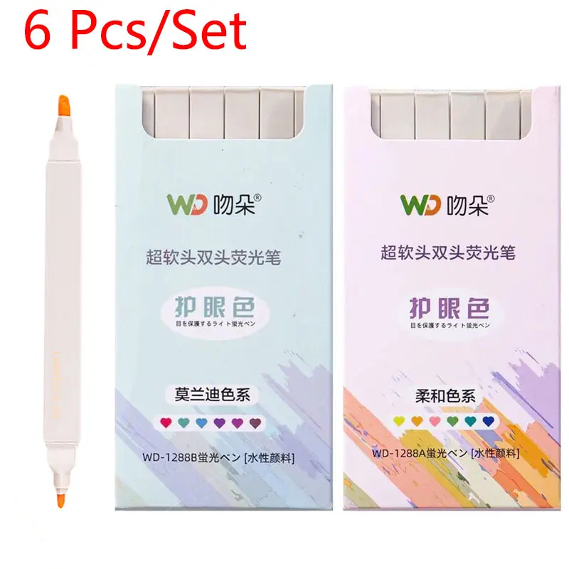 Цветовые маркеры-хайлайтеры с мягкой кисточкой, двусторонние чернила на водной основе, школьные принадлежности