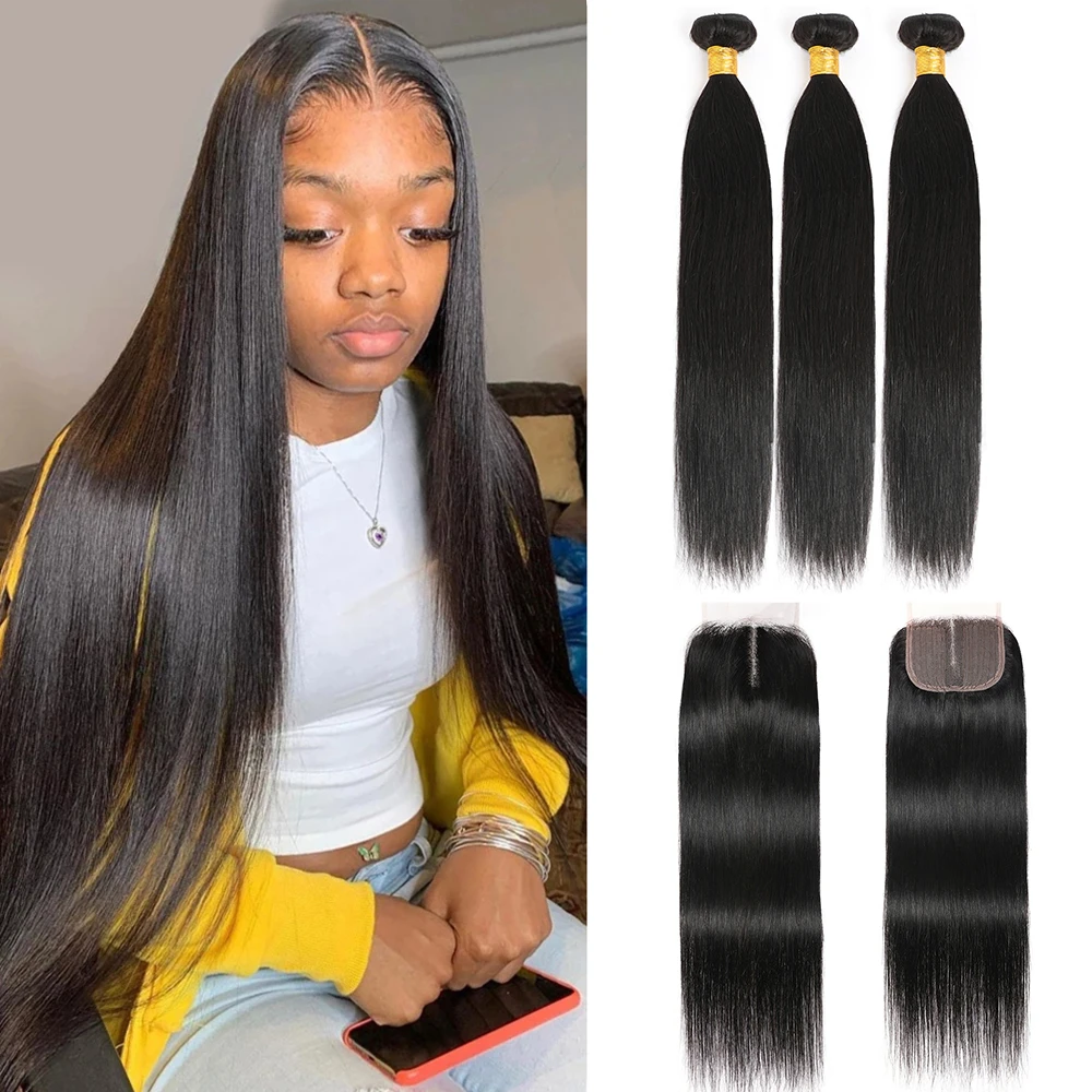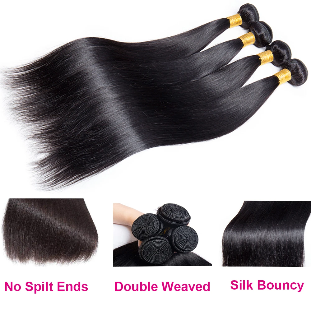 Прямые малазийские волосы с Реми, 28, 30, 32, 40 дюймов, волнистые человеческие волосы, пучки с HD кружевной застежкой, искусственные волосы для наращивания