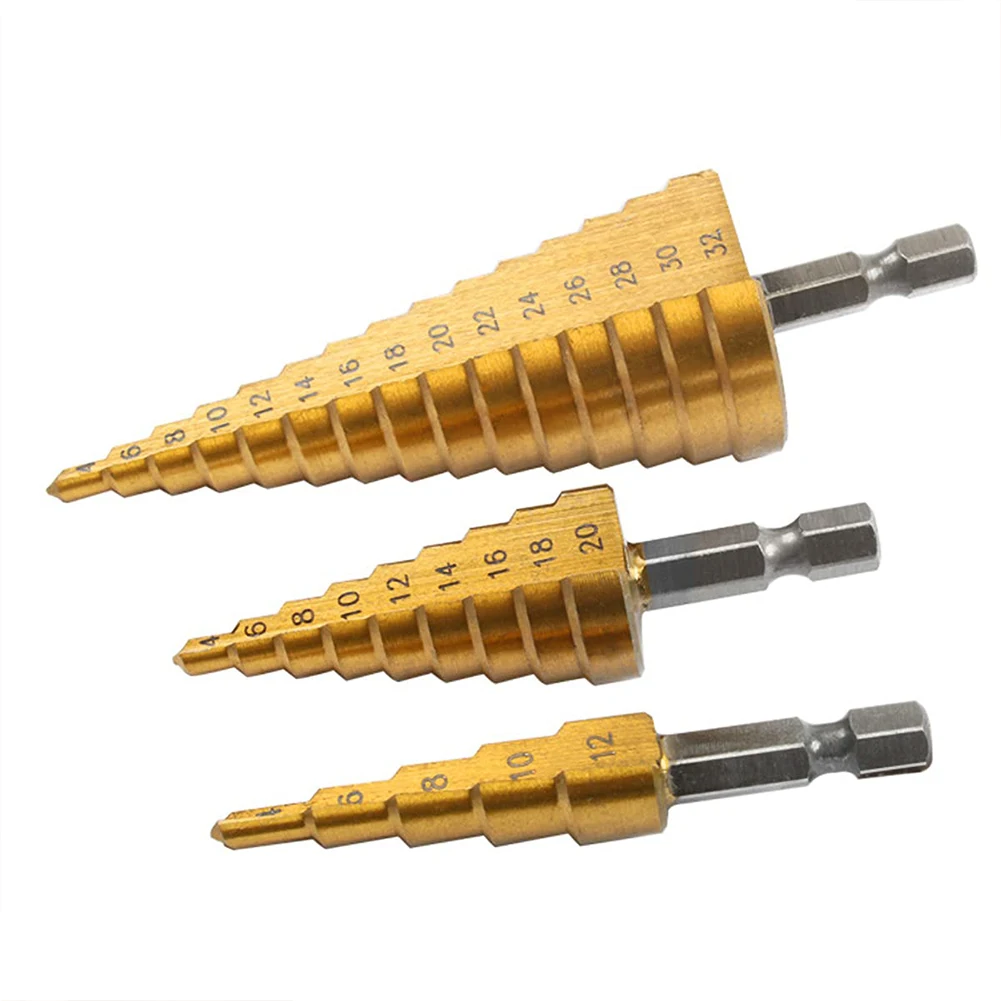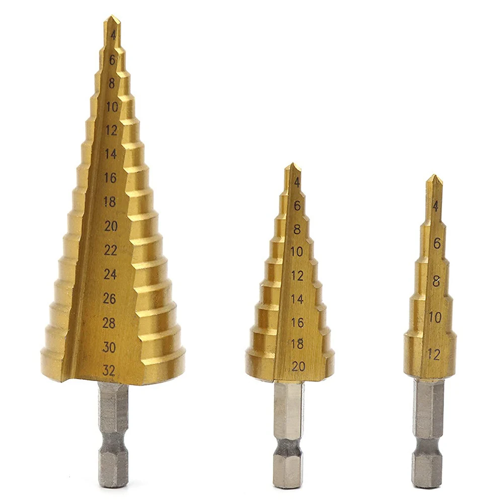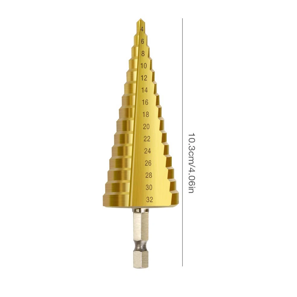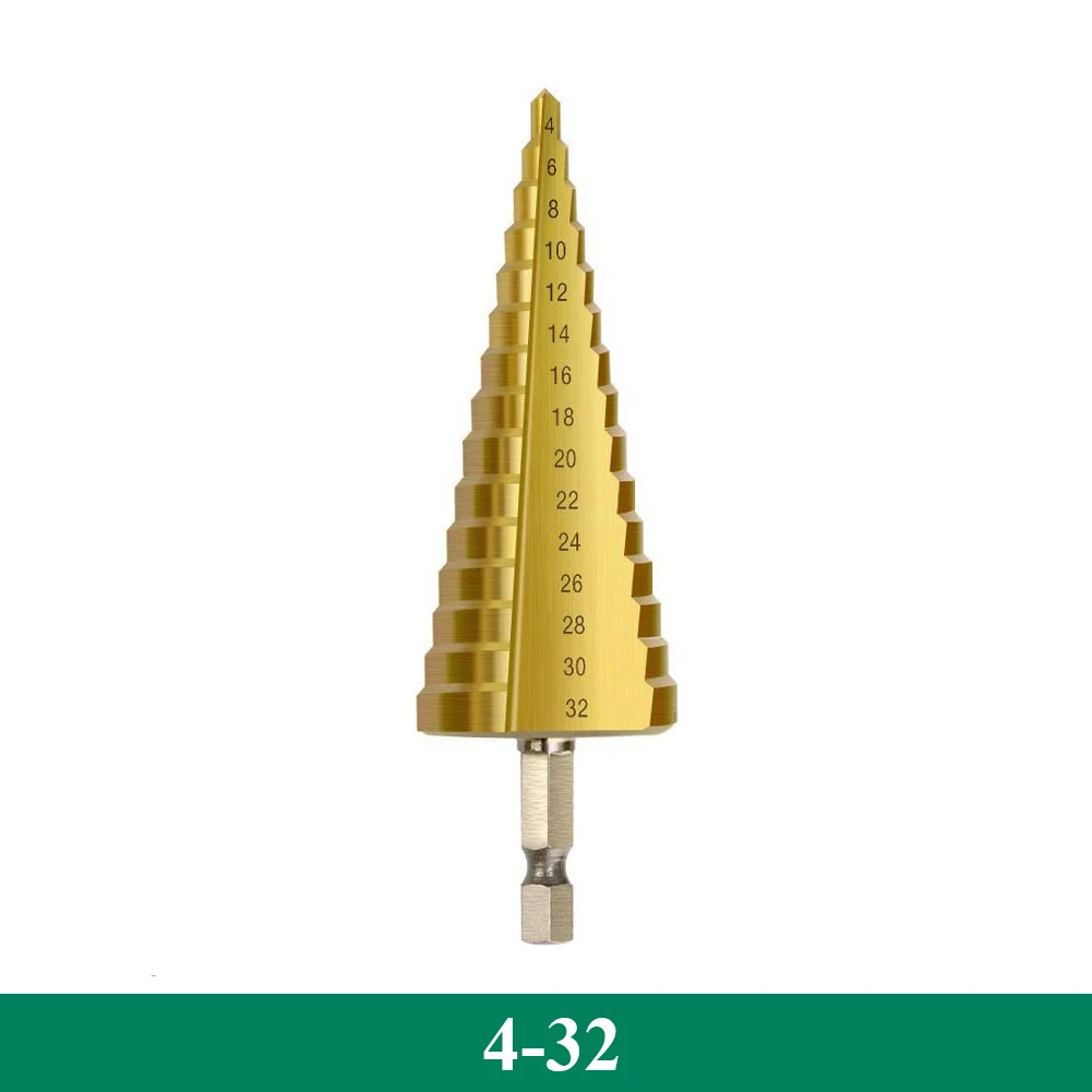 Ступенчатое сверло из быстрорежущей стали с титановым покрытием, 1 шт., 4-32 мм, для электроинструментов, металла, высокоскоростной резак для отверстий из стали и дерева, Деревообрабатывающие инструменты