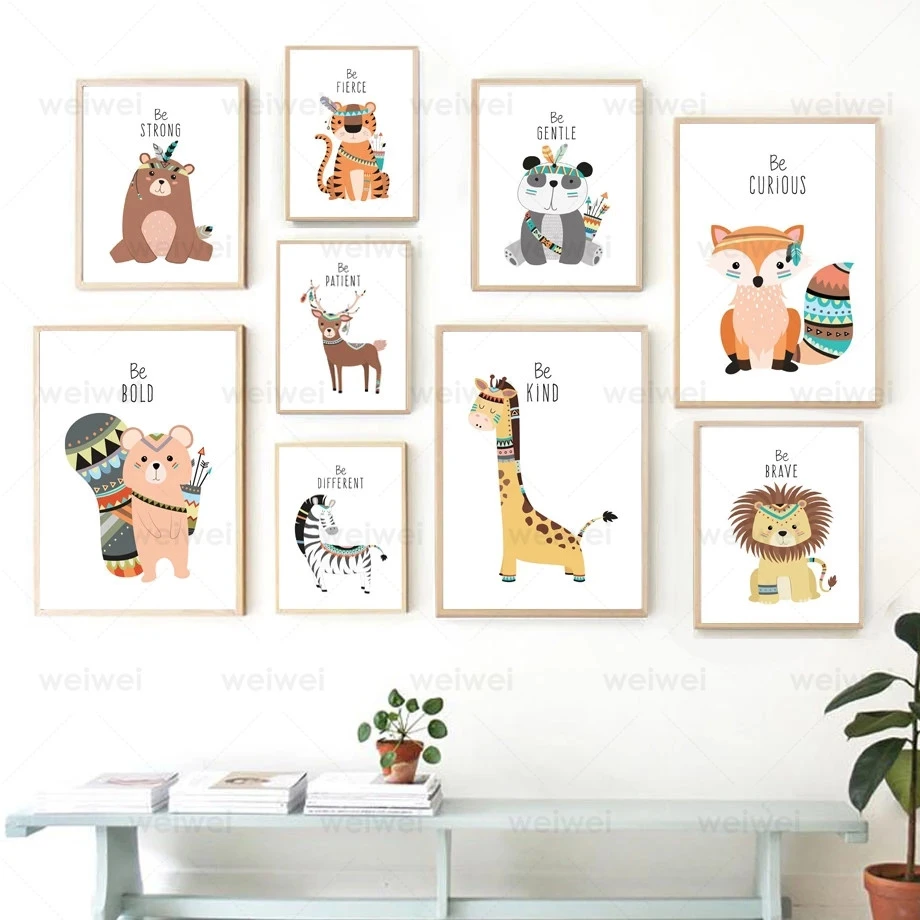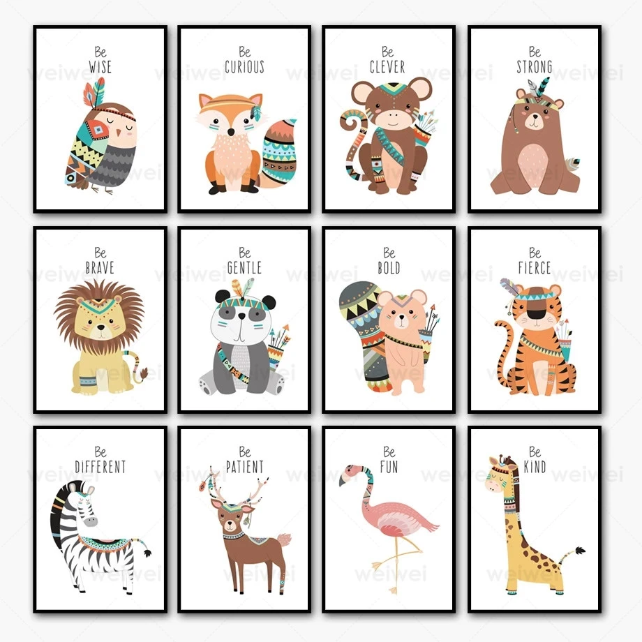 Олень лиса медведь Зебра Панда Сова Лев детская настенная Картина на холсте скандинавские постеры и принты декор в стиле бохо картины для детской комнаты