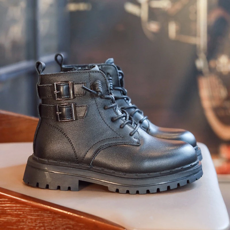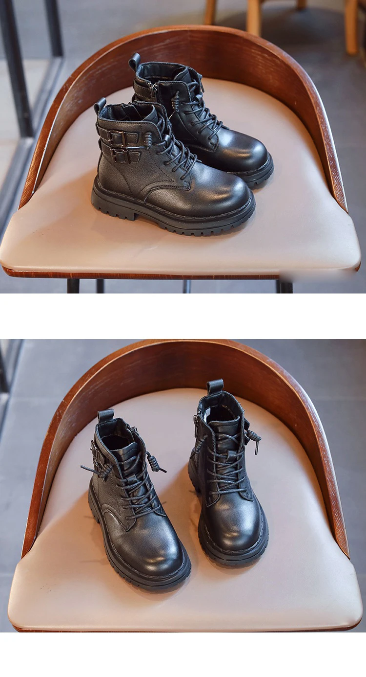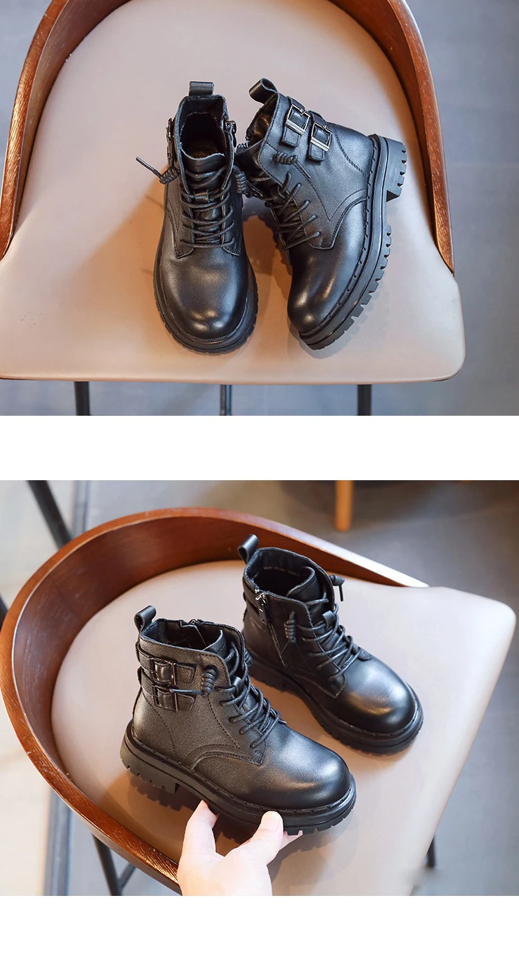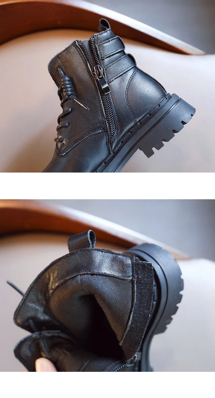 Детские ботинки; Сезон осень; Новинка; Детская обувь из натуральной кожи; Модные ботинки для верховой езды для маленьких девочек; Брендовые ботильоны для мальчиков; Ботинки Martin; Цвет Черный