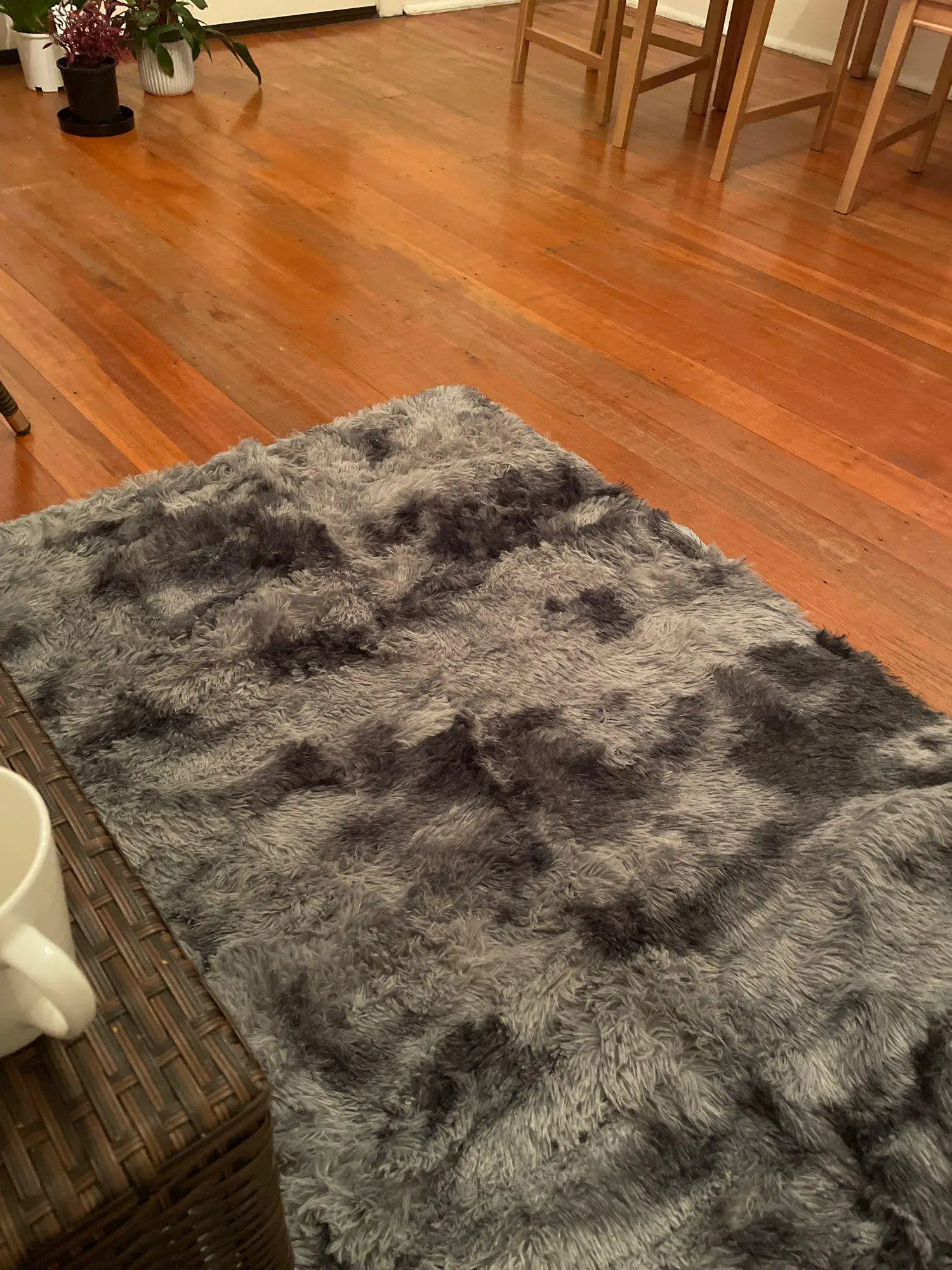 Отличный ковер, очень пушистый. Размер идеально подходит для моей гостиной. Хорошо упакован, небольшой плоский, это происходит очень сложен