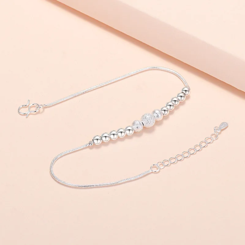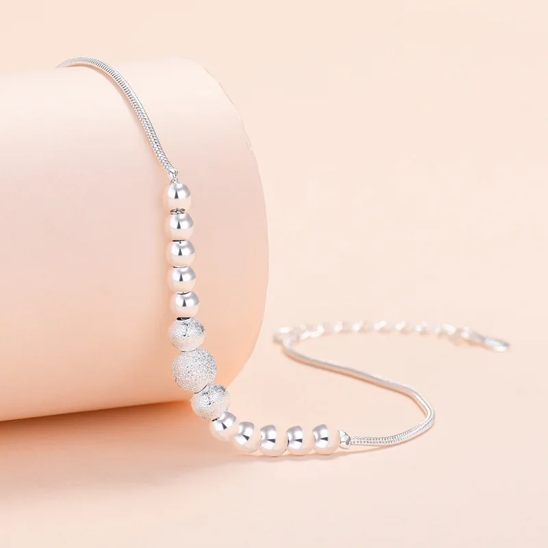 Браслет CIAXY с переводными бусинами и штампами 925, женские браслеты с геометрическими шариками, Простые Модные ювелирные изделия серебряного цвета
