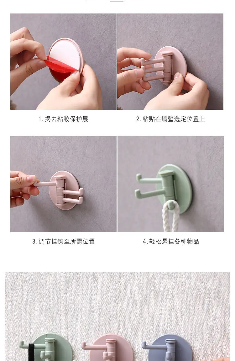 Самоклеящиеся настенные крючки, вращающийся дверной крючок, держате...