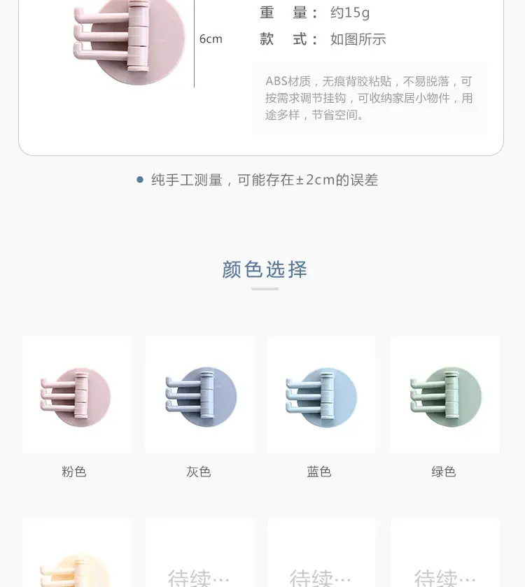 Название продукта: вращающийся крючокРазмер: как показано на рисункеМатериал: АБС + вискозаУпаковка: OPP мешок