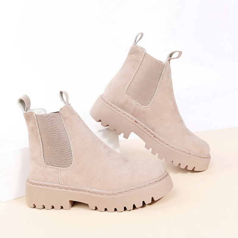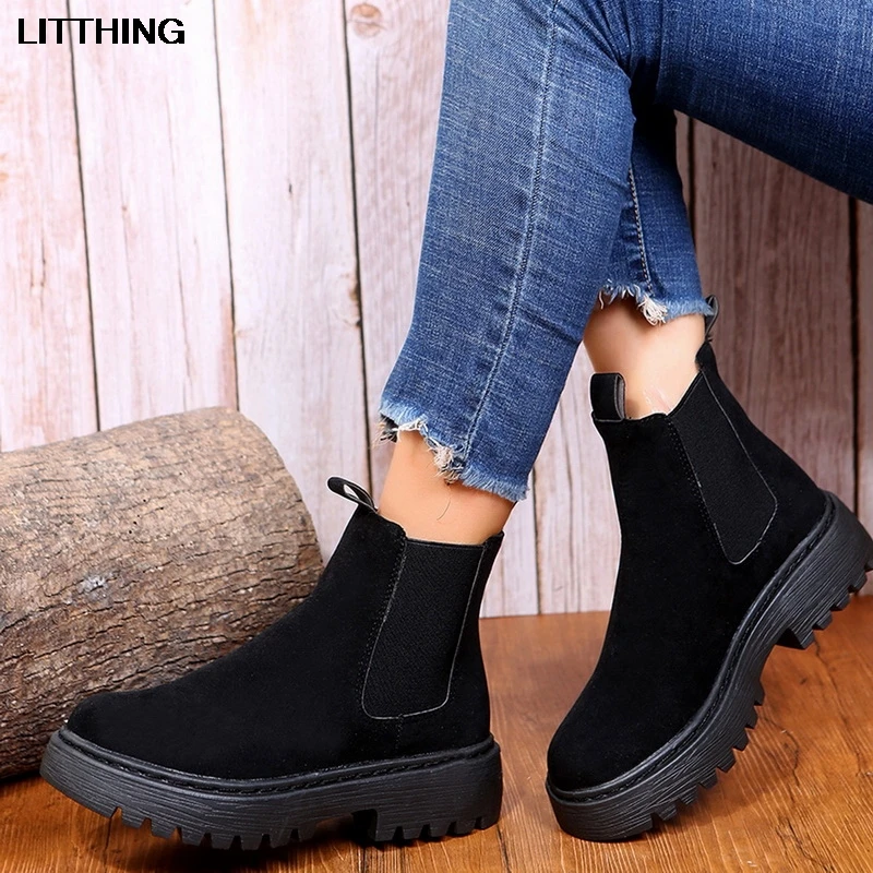 Зимние женские ботинки челси, замшевые кожаные ботильоны для женщин, осенние ботинки без шнуровки на платформе, модные ботинки, женская обувь