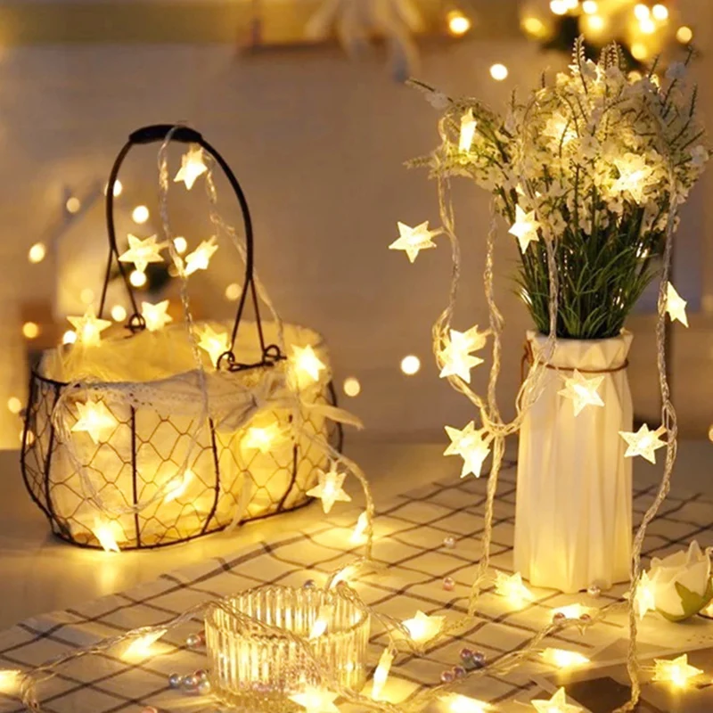 Гирлянда со снежинками и звездами, сказочные огни, гирлянда светоди...