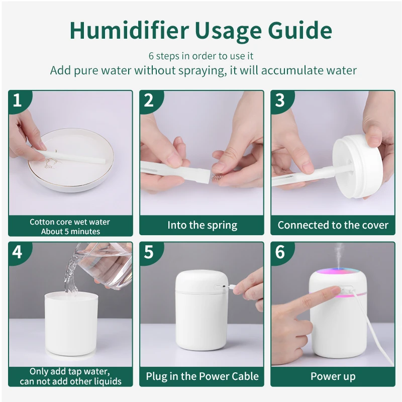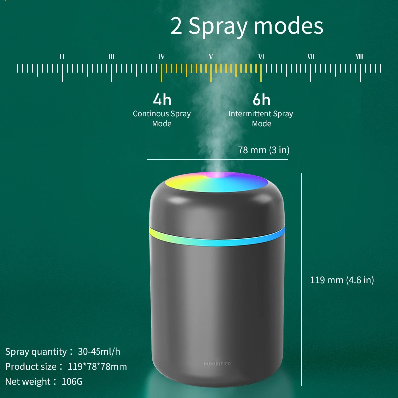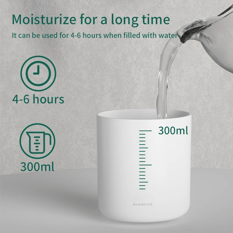 Увлажнитель воздуха портативный ультразвуковой с мини-USB и светильник кой, 300 мл